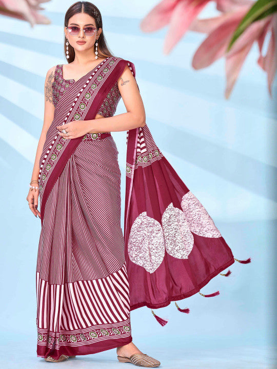 Tikhi Imli Striped Satin Ready To Wear Saree With Blouse Piece