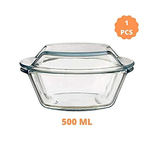 Femora Borosilicate Serving Bowl | Glass Casserole Set, Glass Bowl With Lid, Microwave Safe Bowl Set | 500 Ml