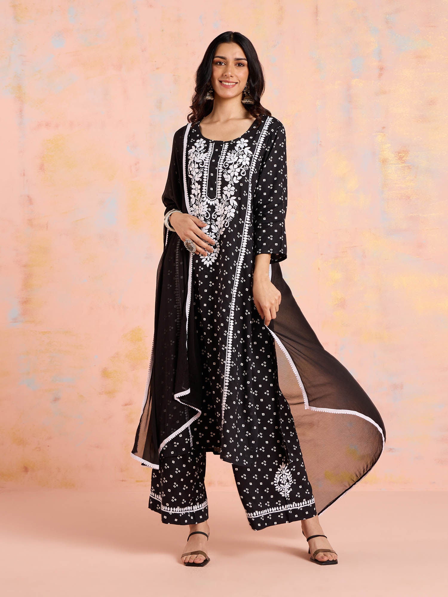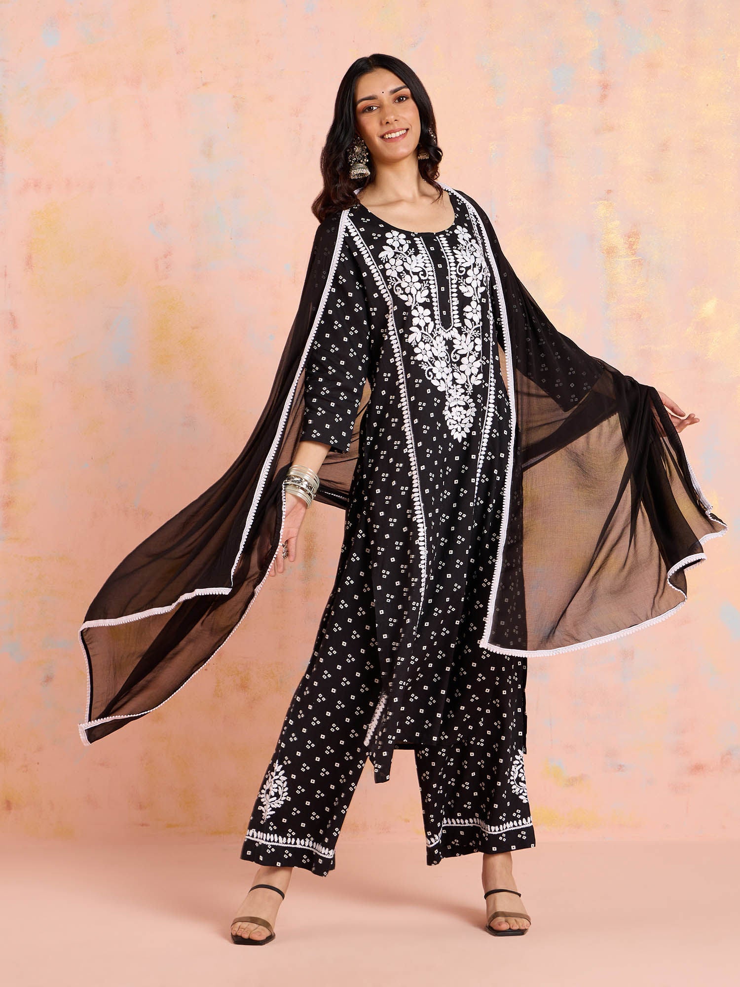 Likha Black Chikankari Kurta Pant & Dupatta (Set of 3)