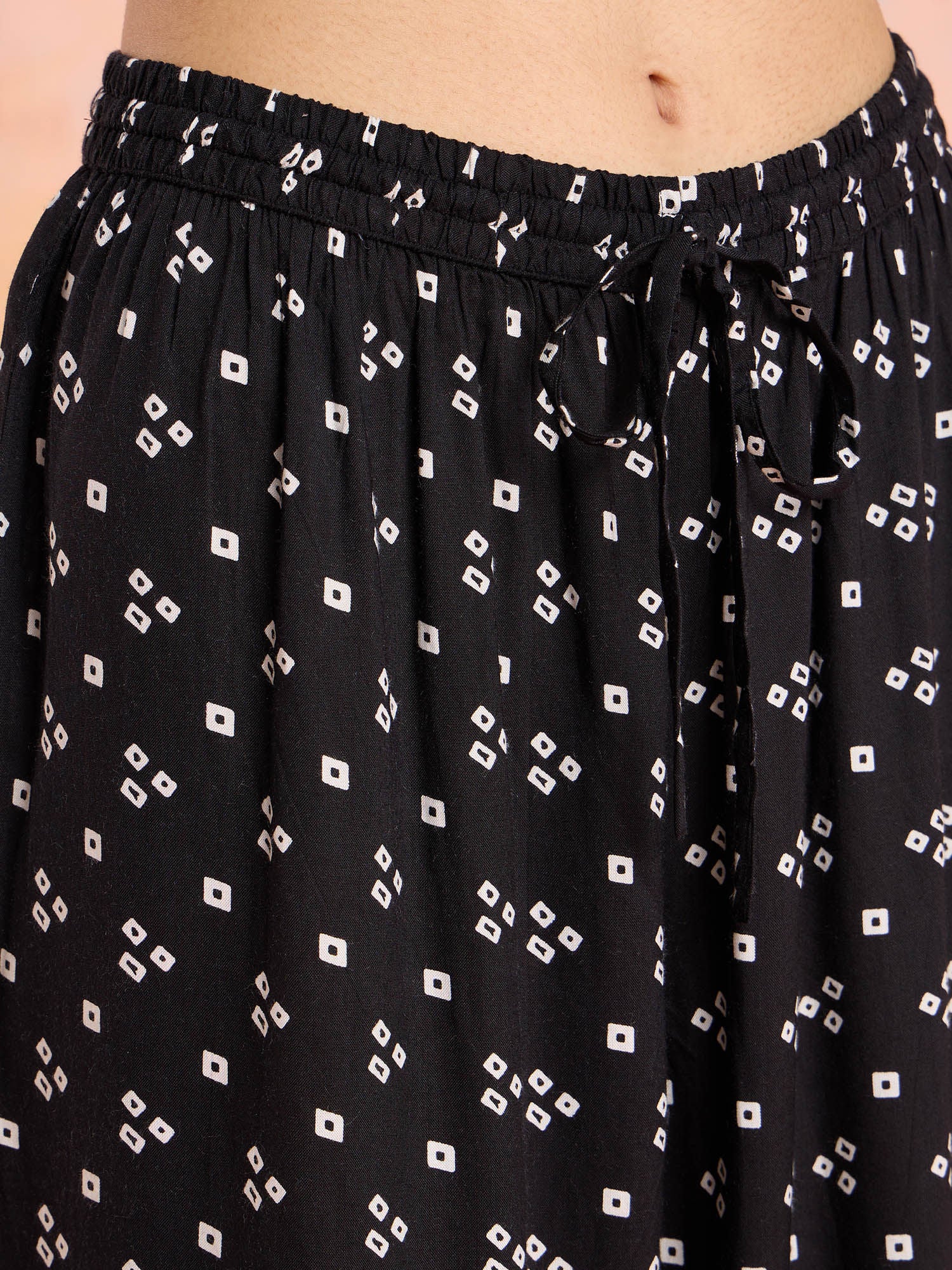 Made from comfortable Rayon, this set boasts a normal fit design and a convenient drawstring closure for a versatile look suitable for various body types. Accessorize with jhumkas and flats to complete your chic and stylish look.