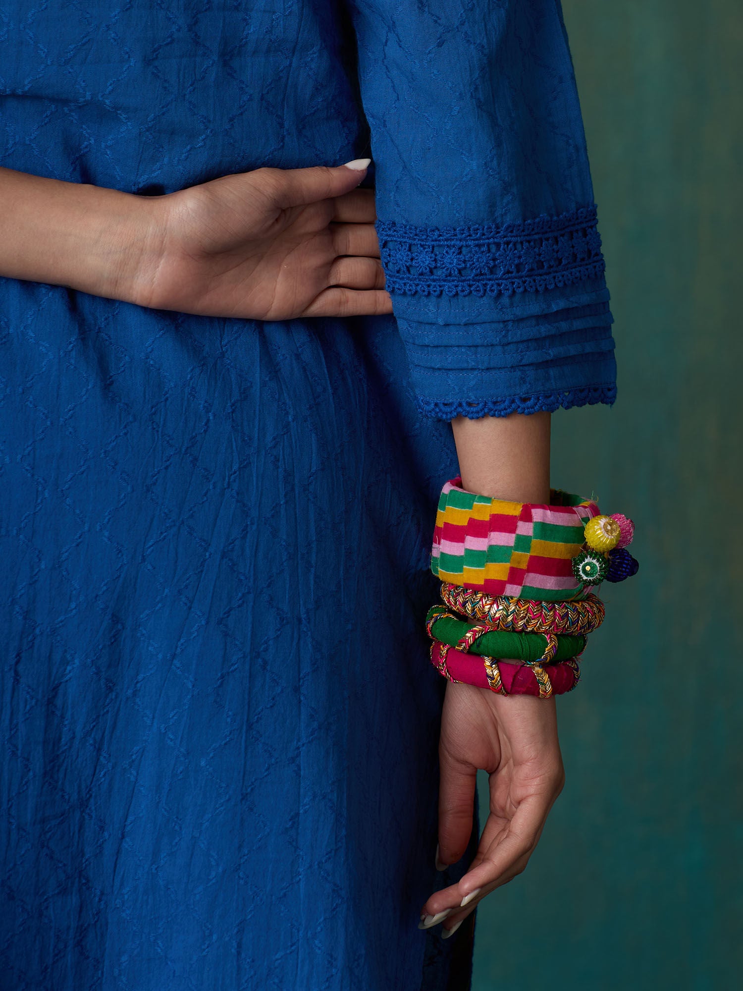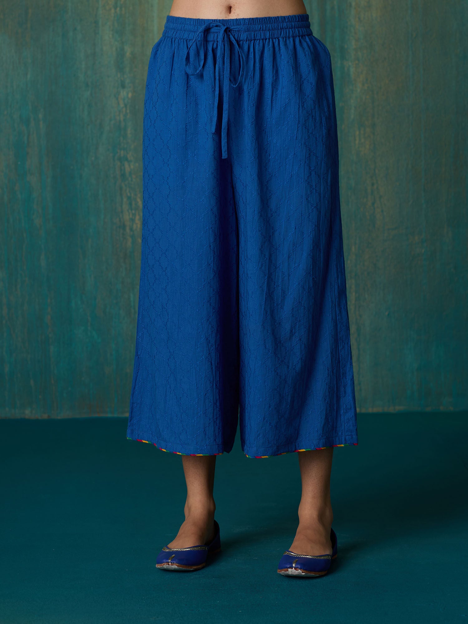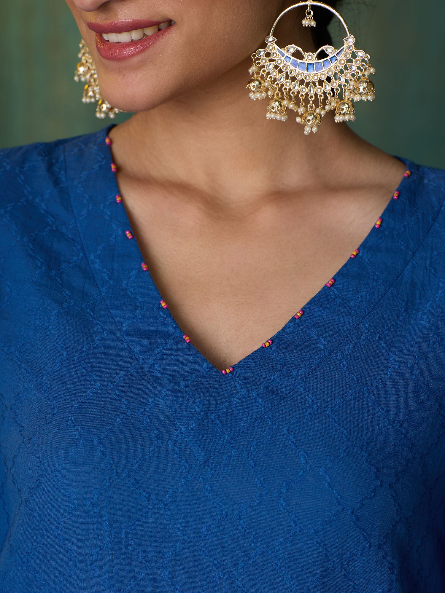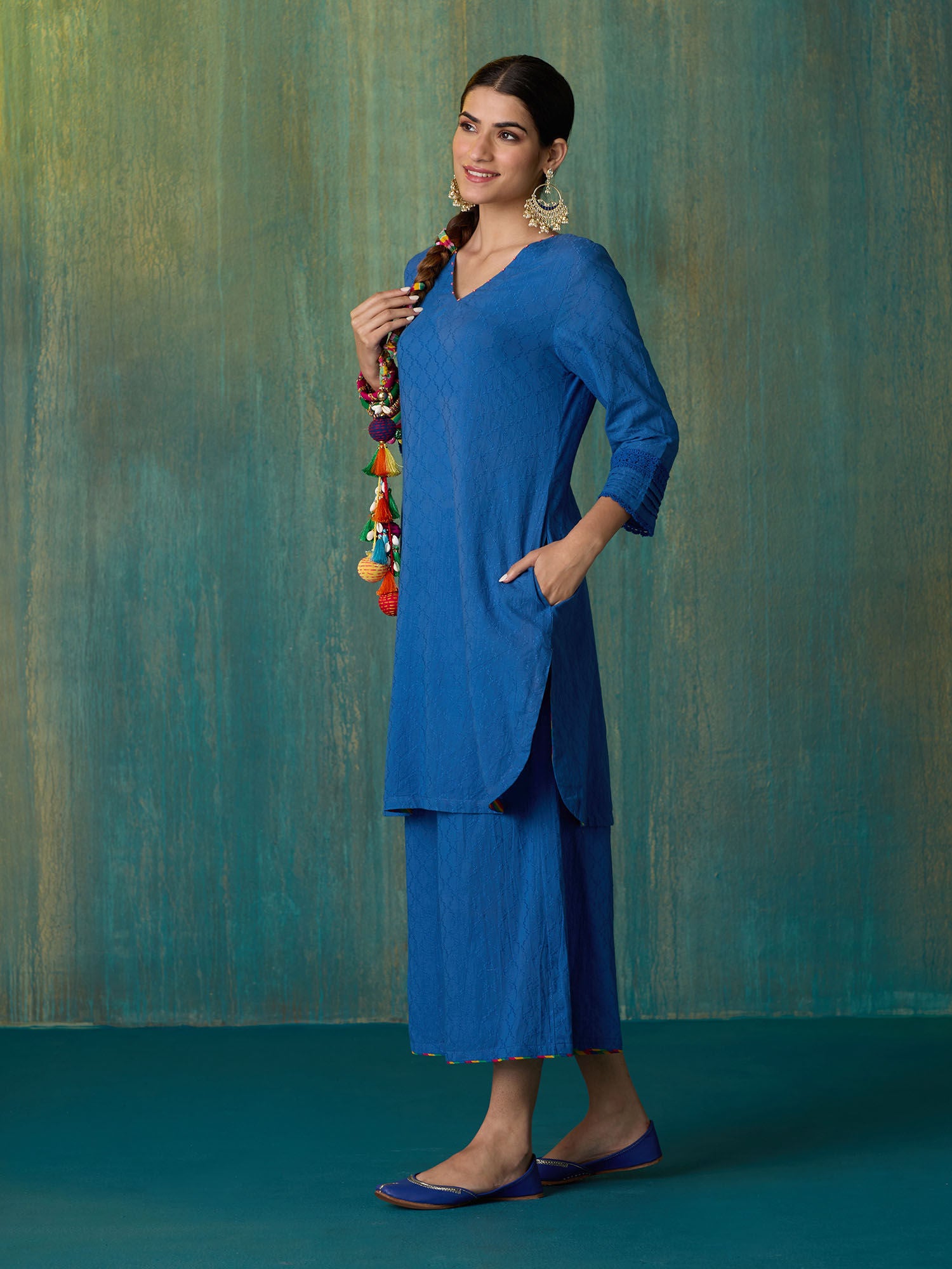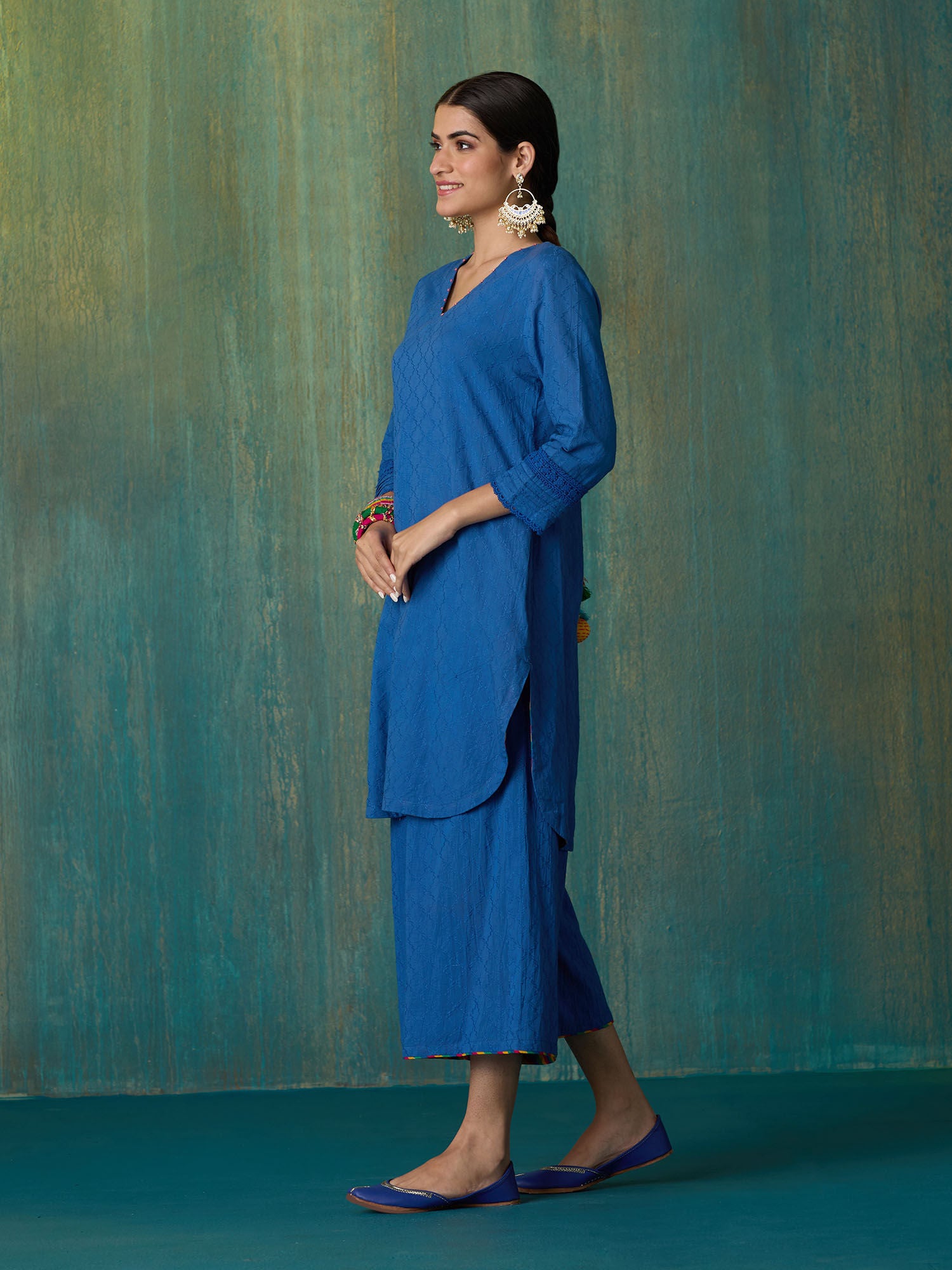 Likha Blue Ethnic Bloom Cotton Dobby with Laces Co-ord Set LIKSKD288 (Set of 2)