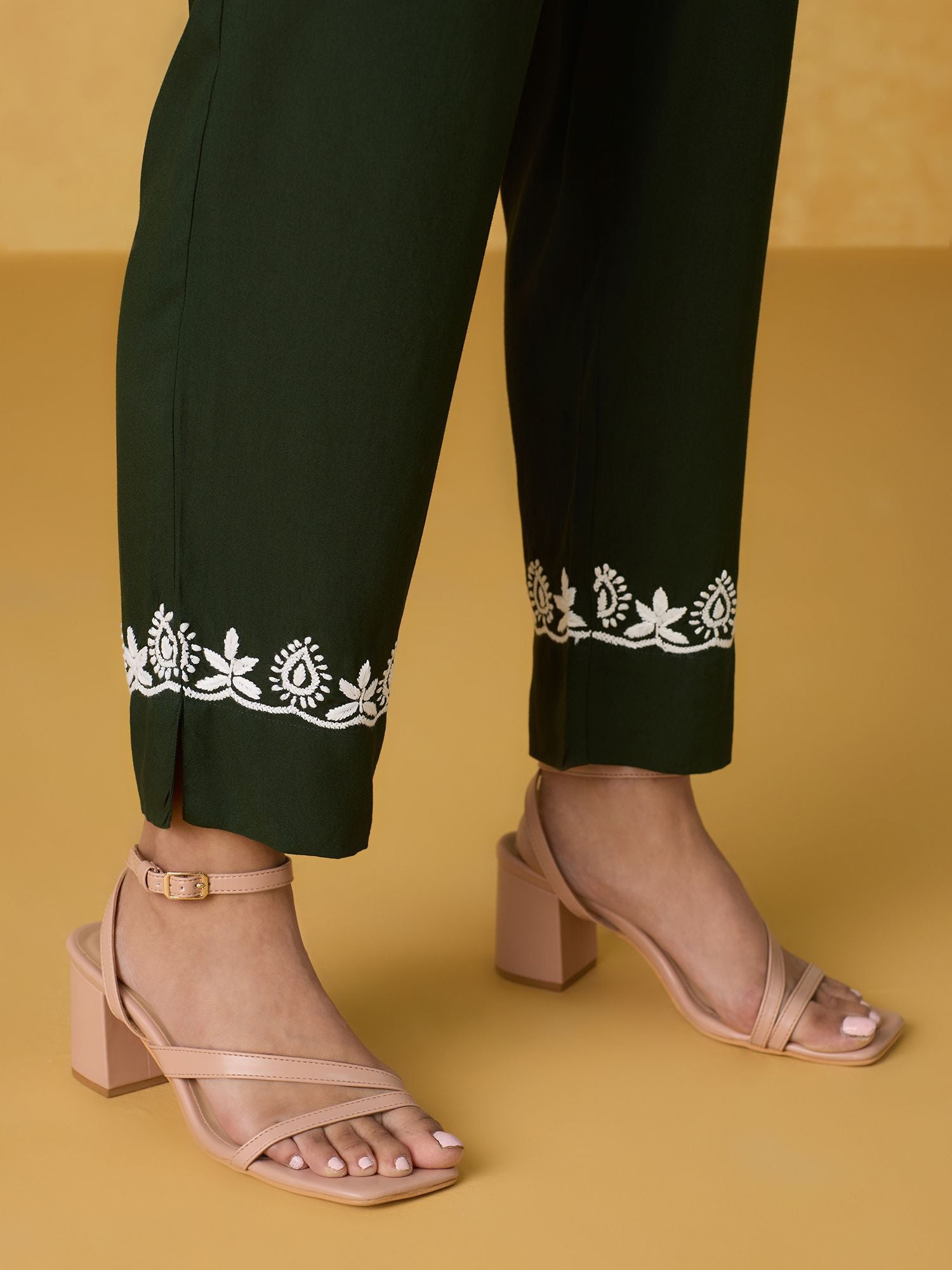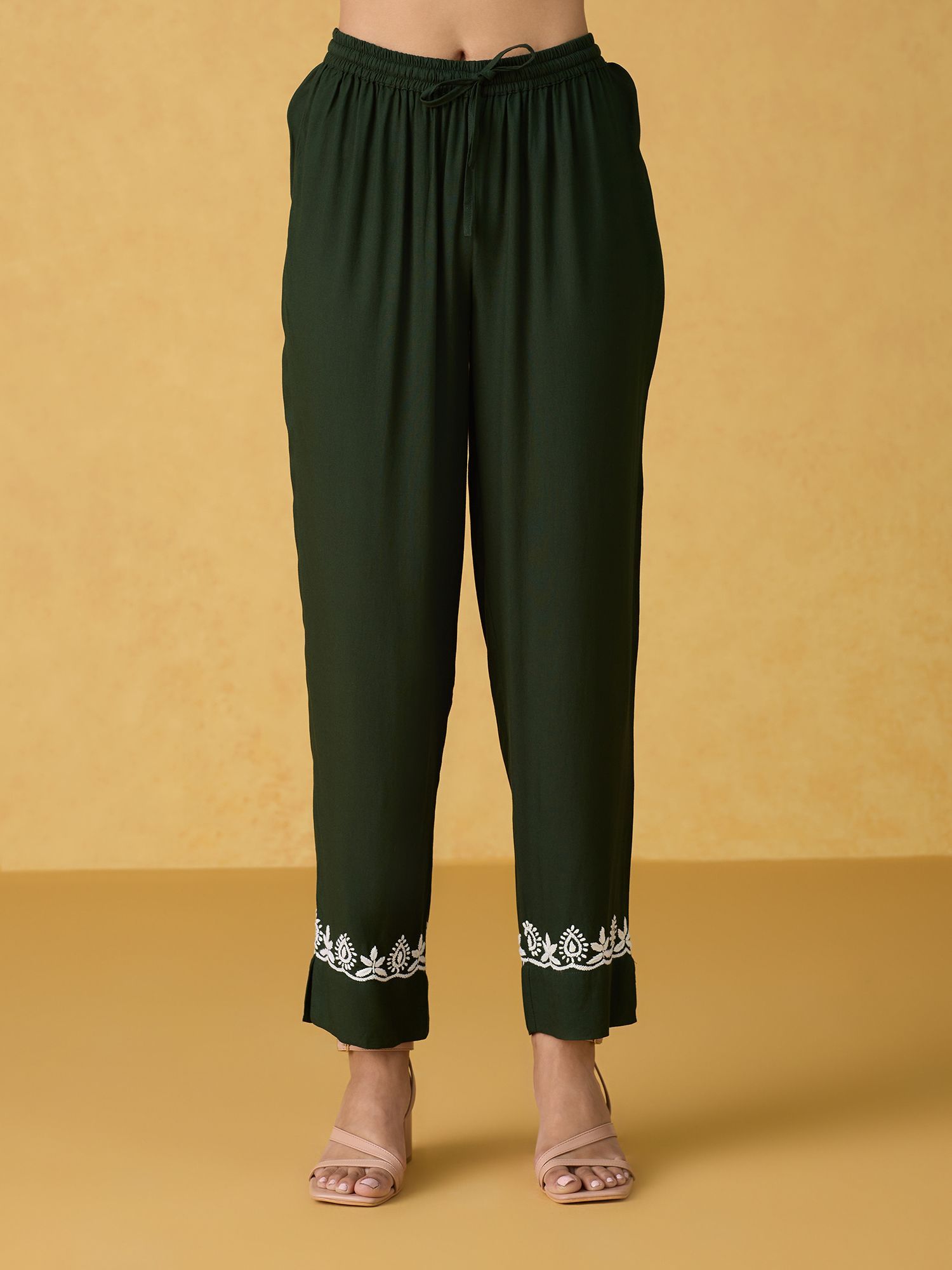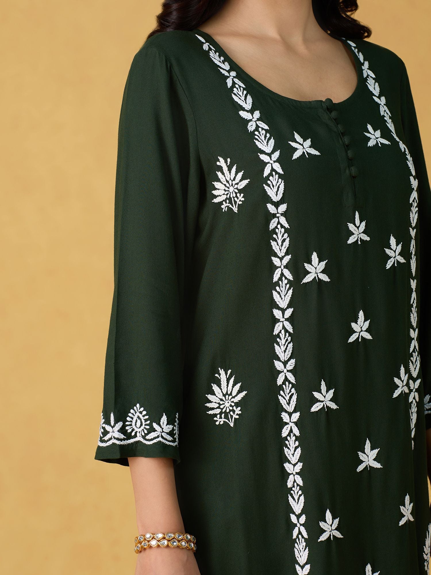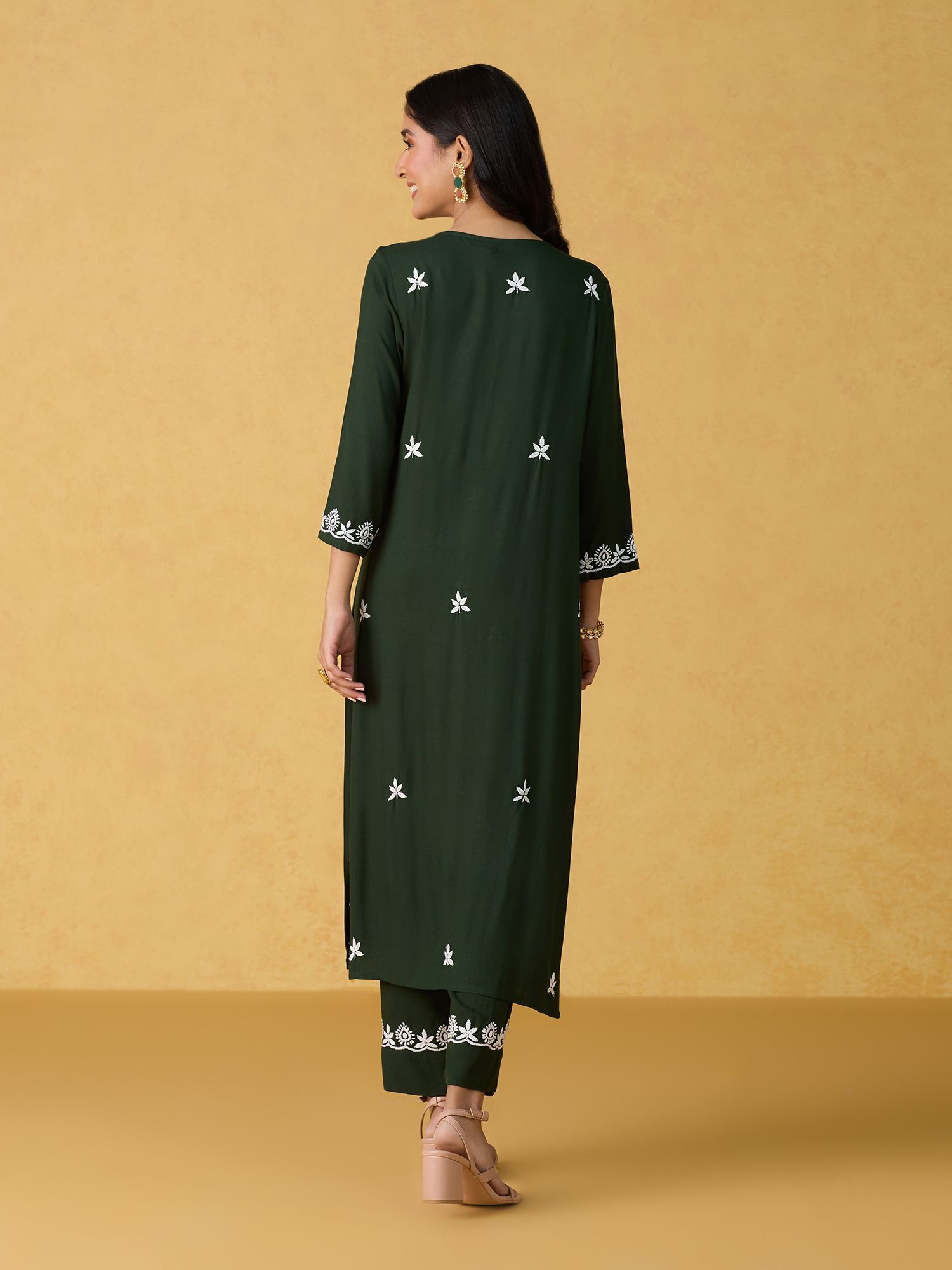 Likha Green Chikankari Kurta Pant & Dupatta (Set of 3)