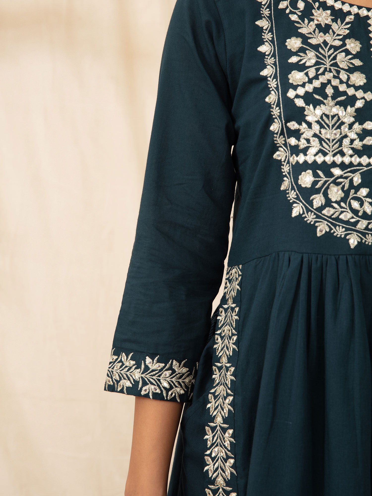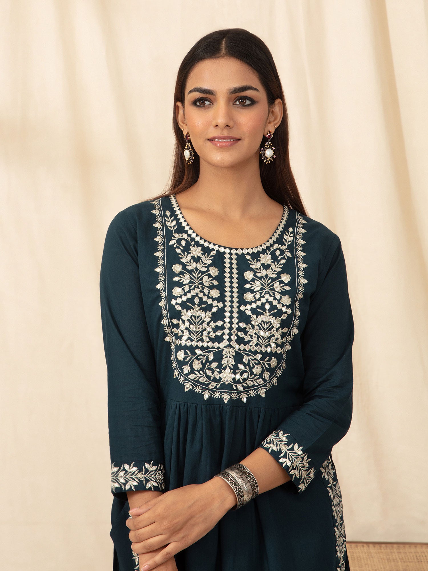 Likha Navy Embroidered Naira Cut Co-ord Set LIKSKD72 (Set of 2) - M