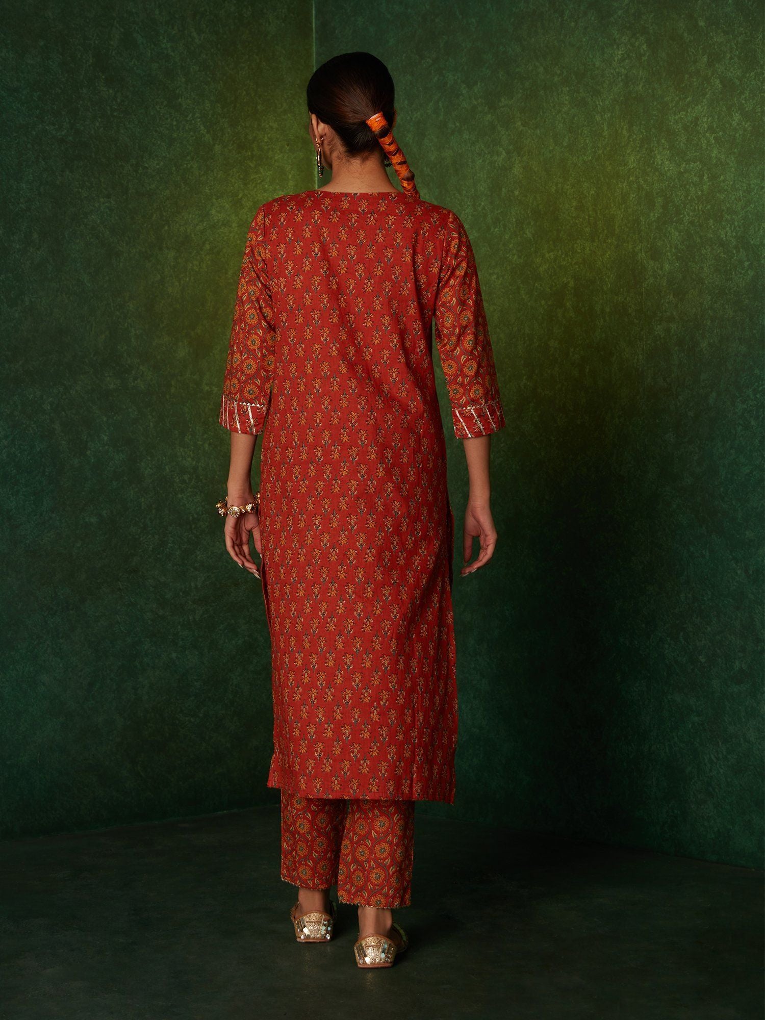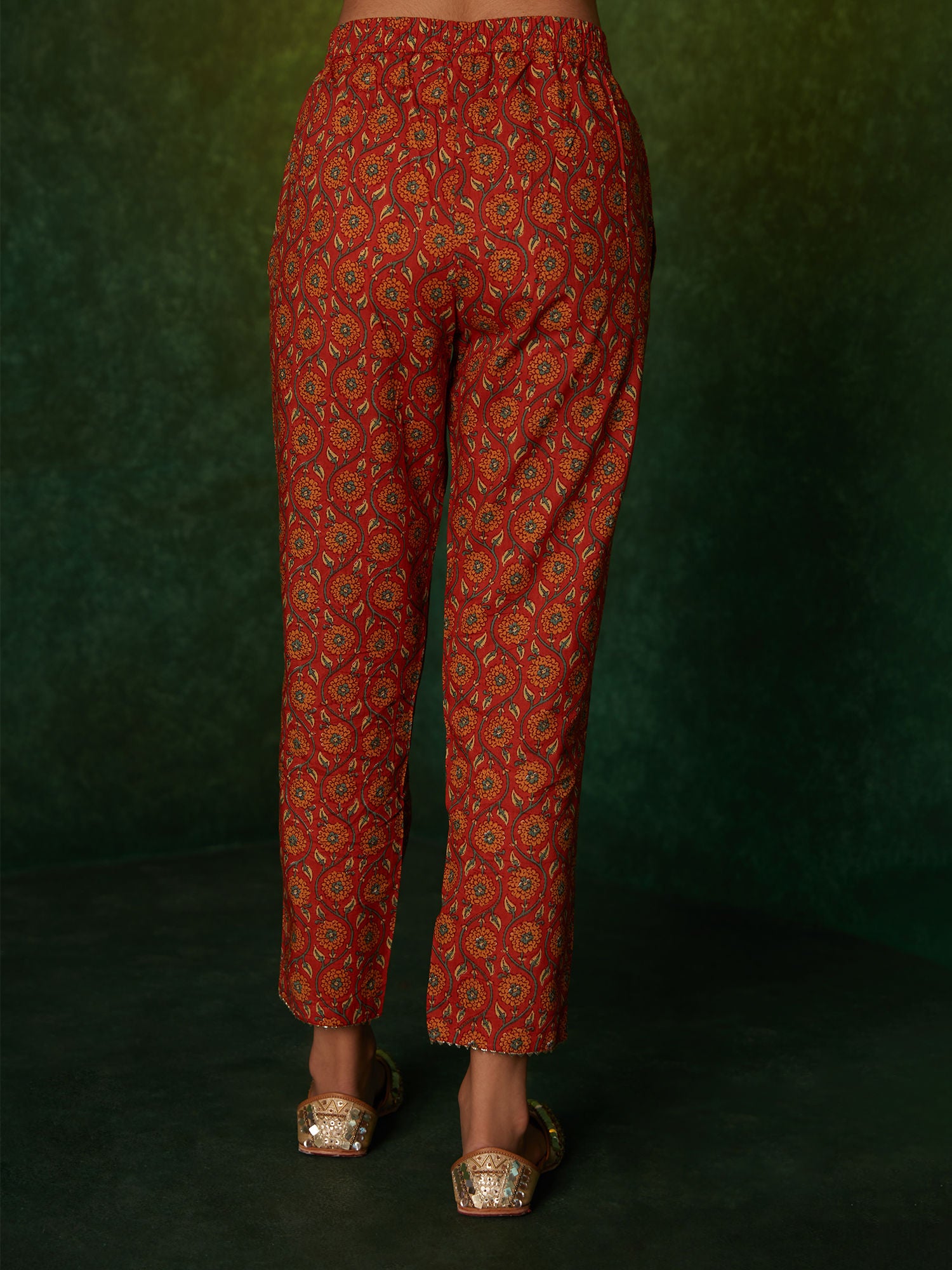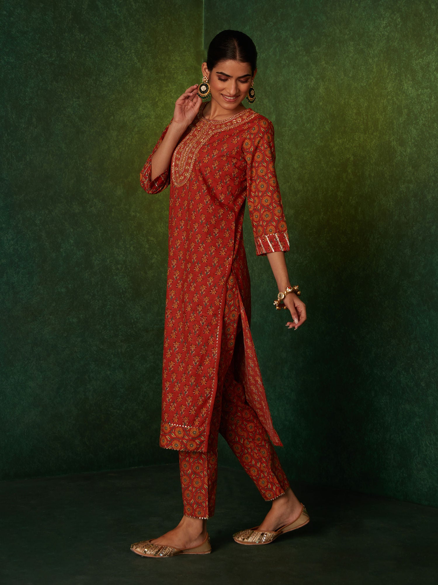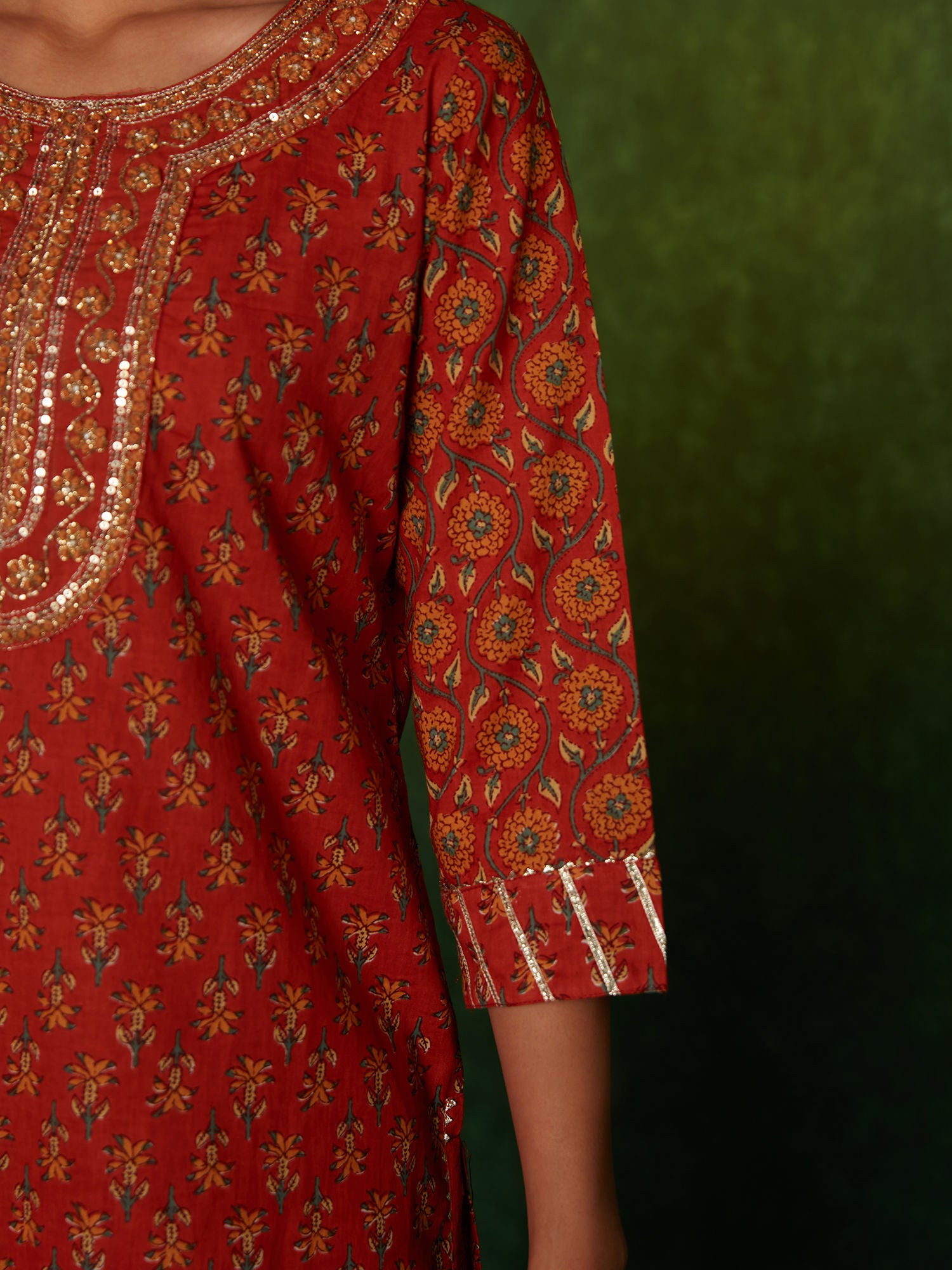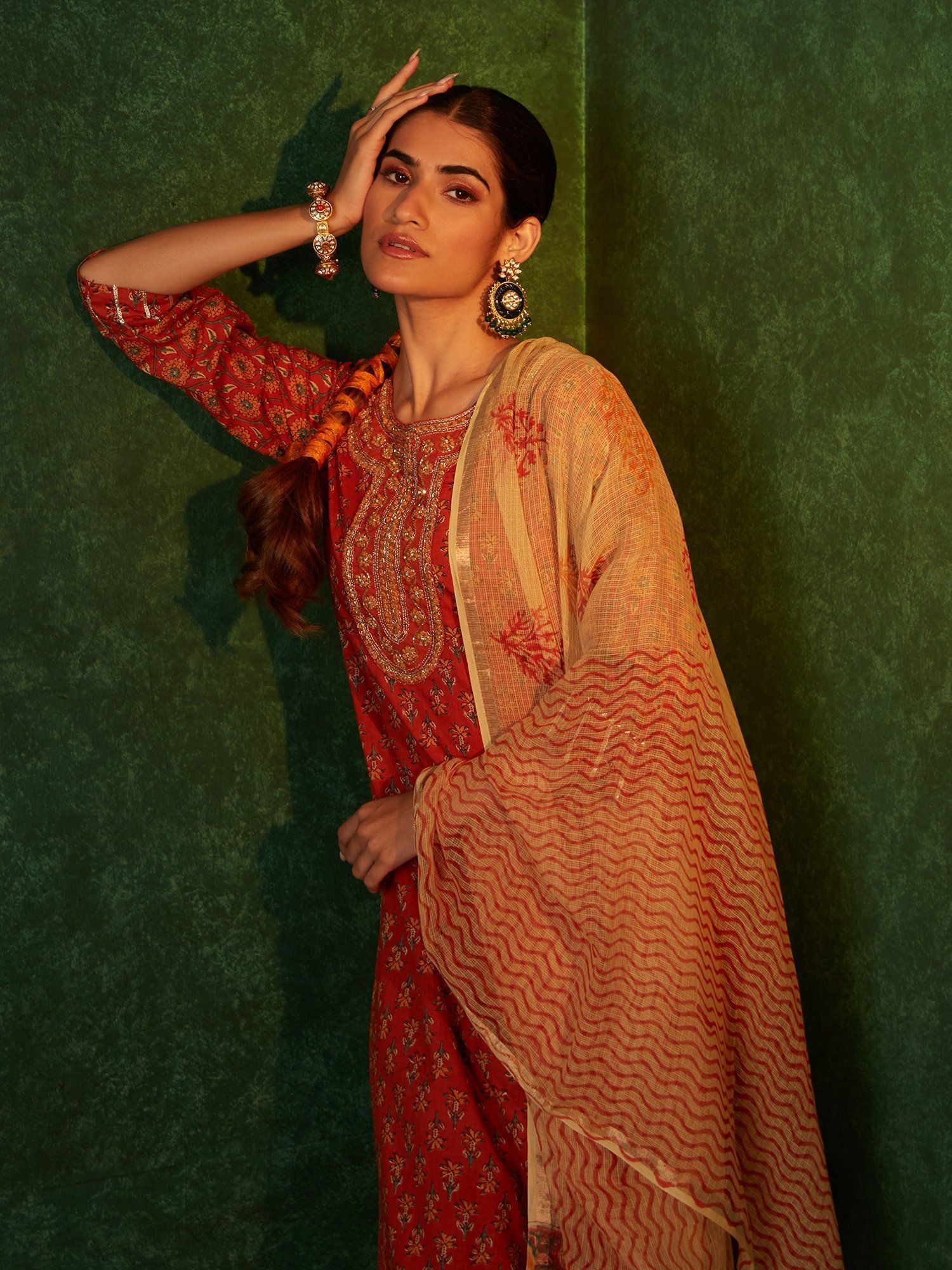 Likha Orange Floral Print & Embroidered Kurta Pant With Dupatta LIKSKD177