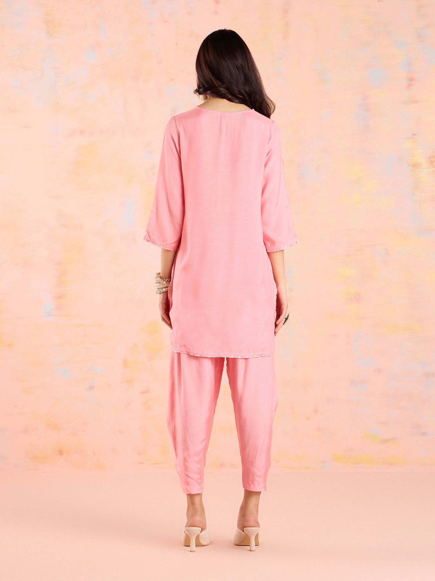 Likha Pink Garden Groove Shantoon Embroidered Kurta & Dhoti LIKSKD302 Co-ord Set (Set of 2)