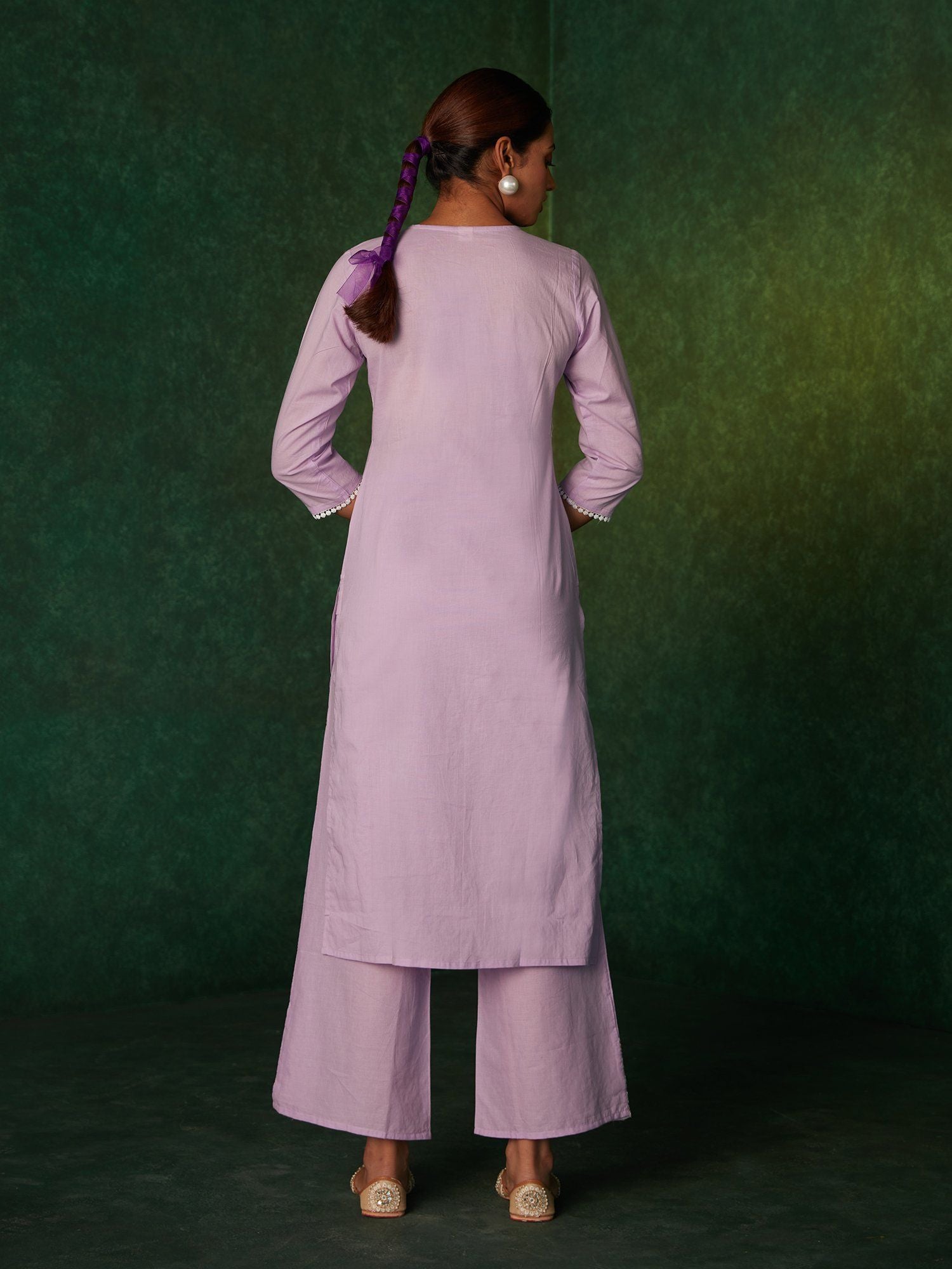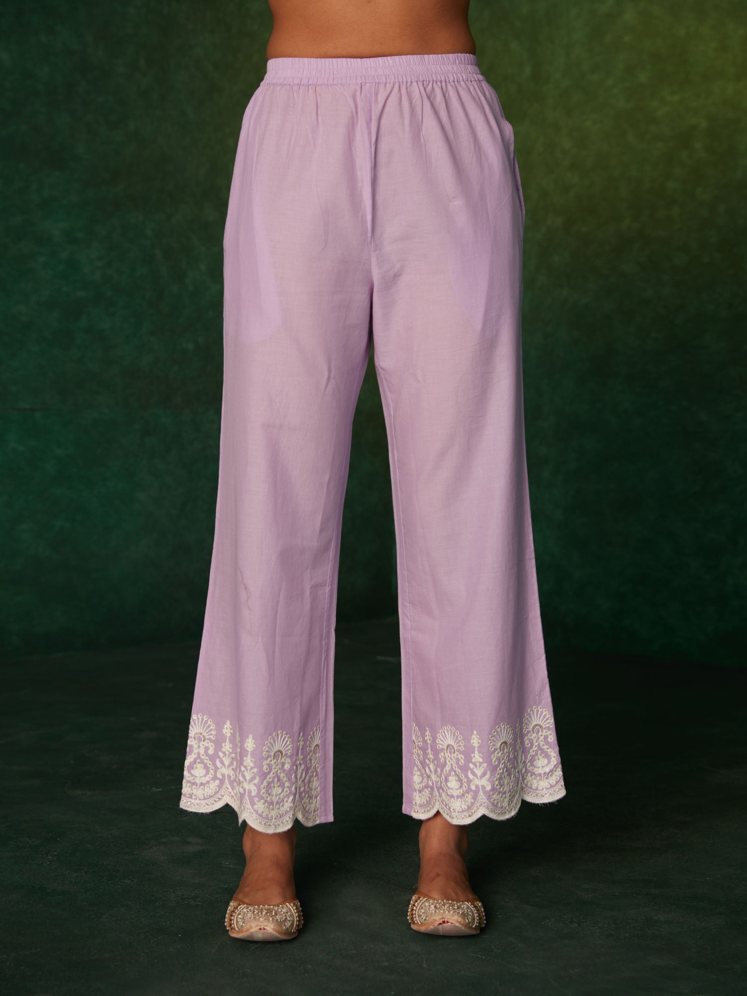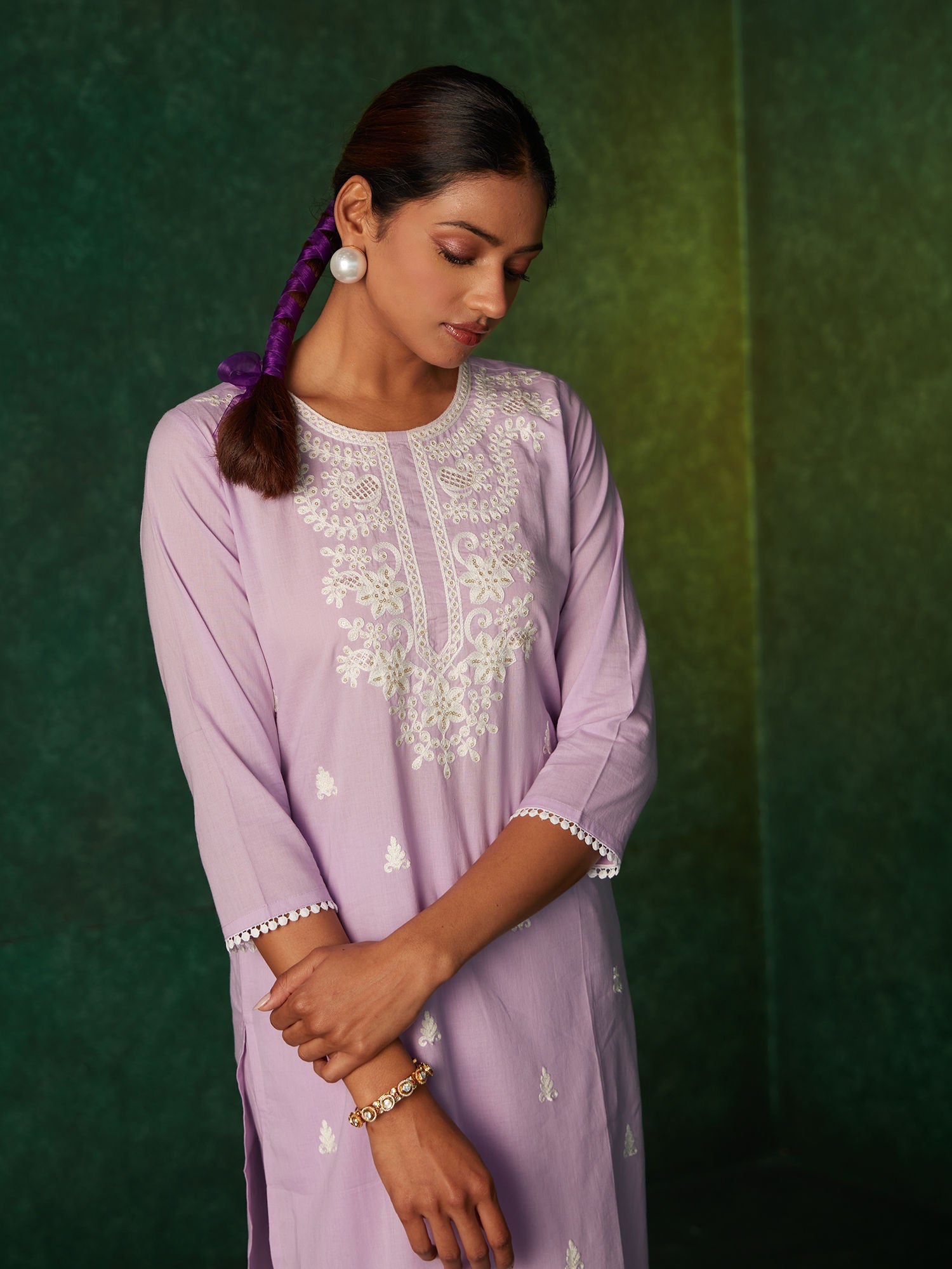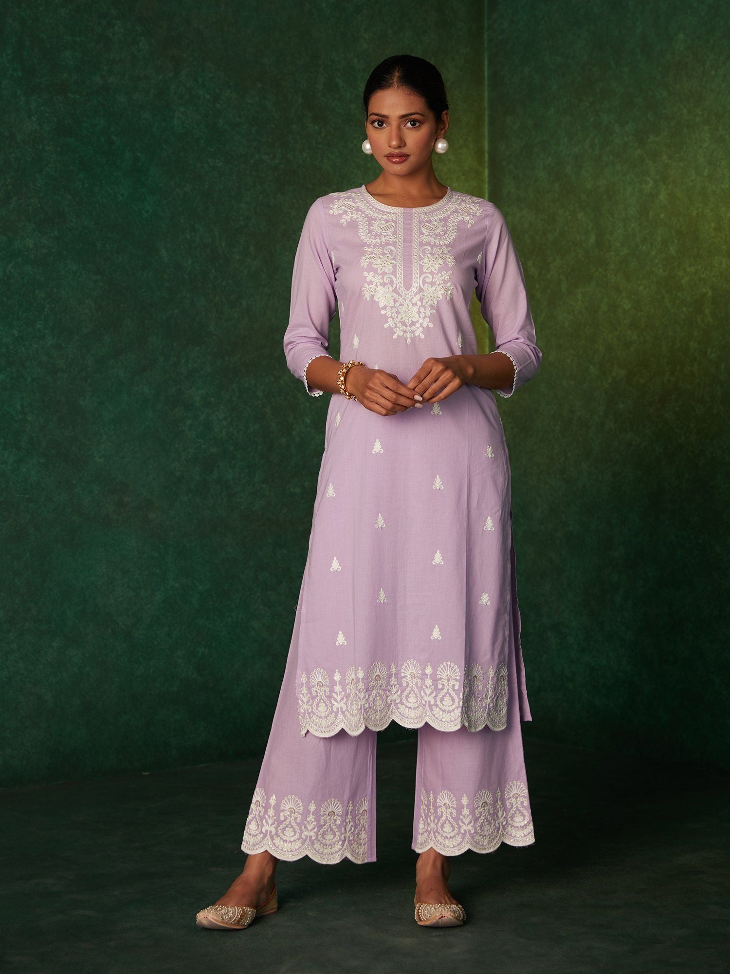Likha Purple Scallop Embroidery Kurta Set & Dupatta LIKSKD174 (Set of 3) - M