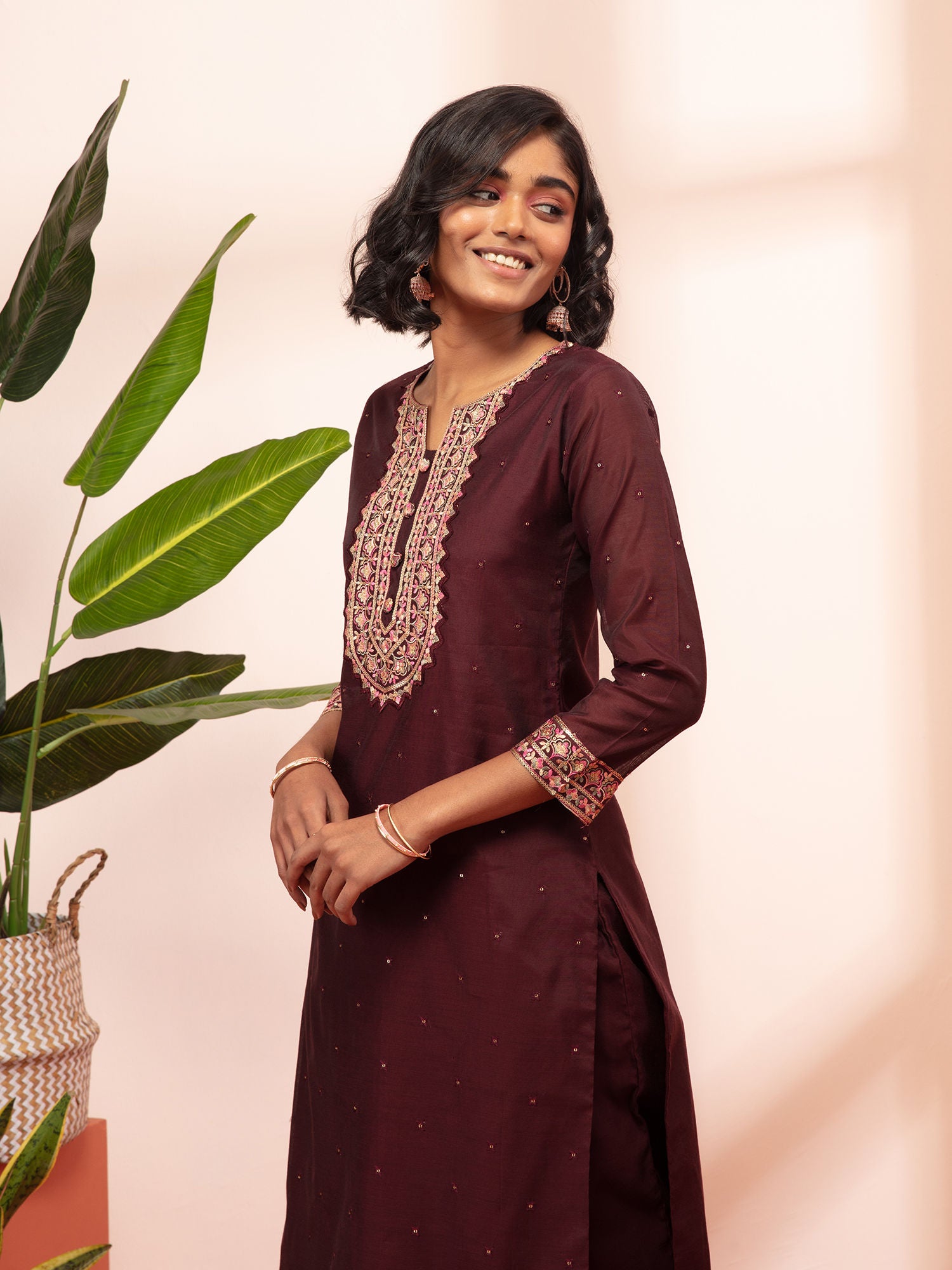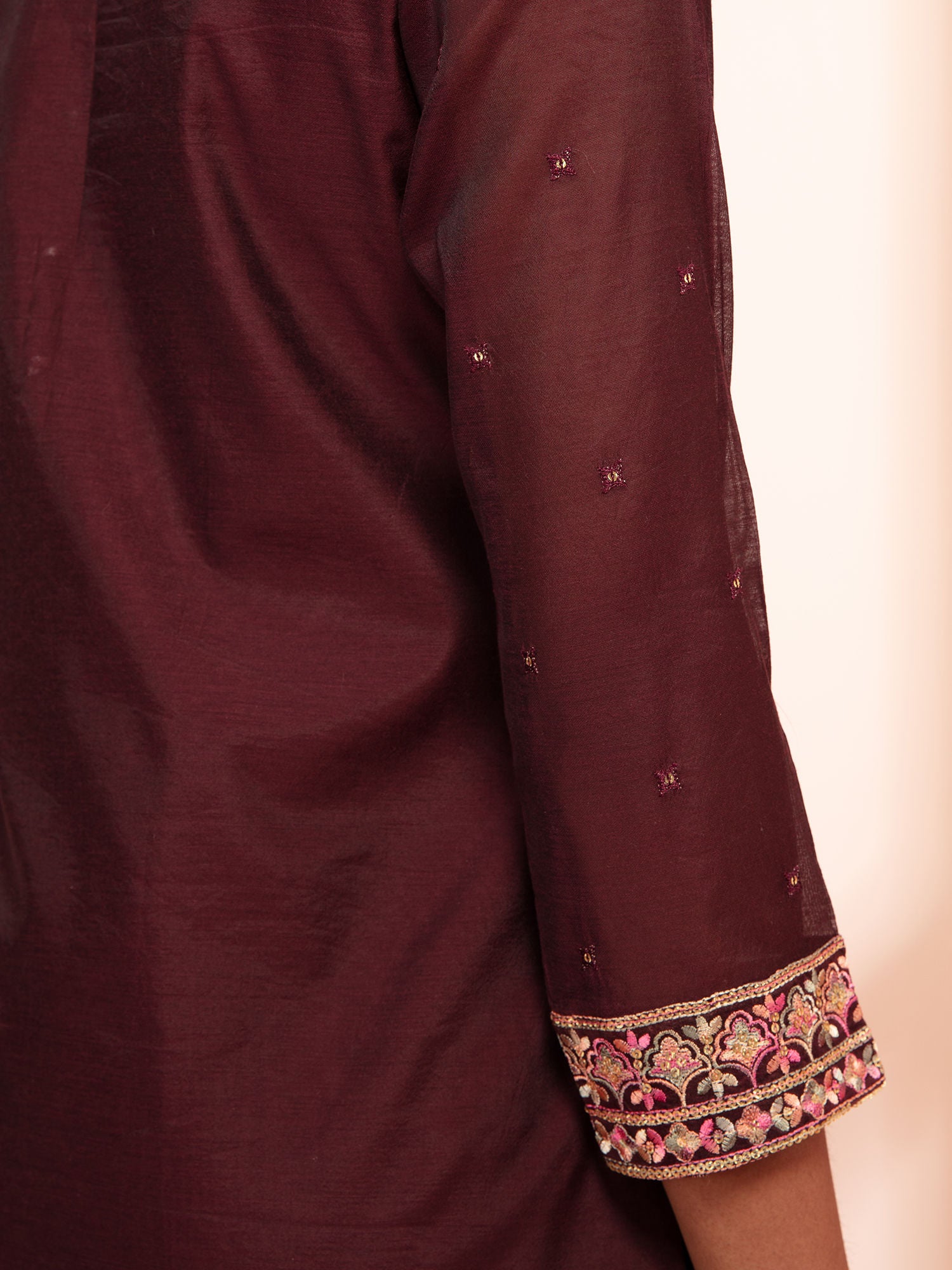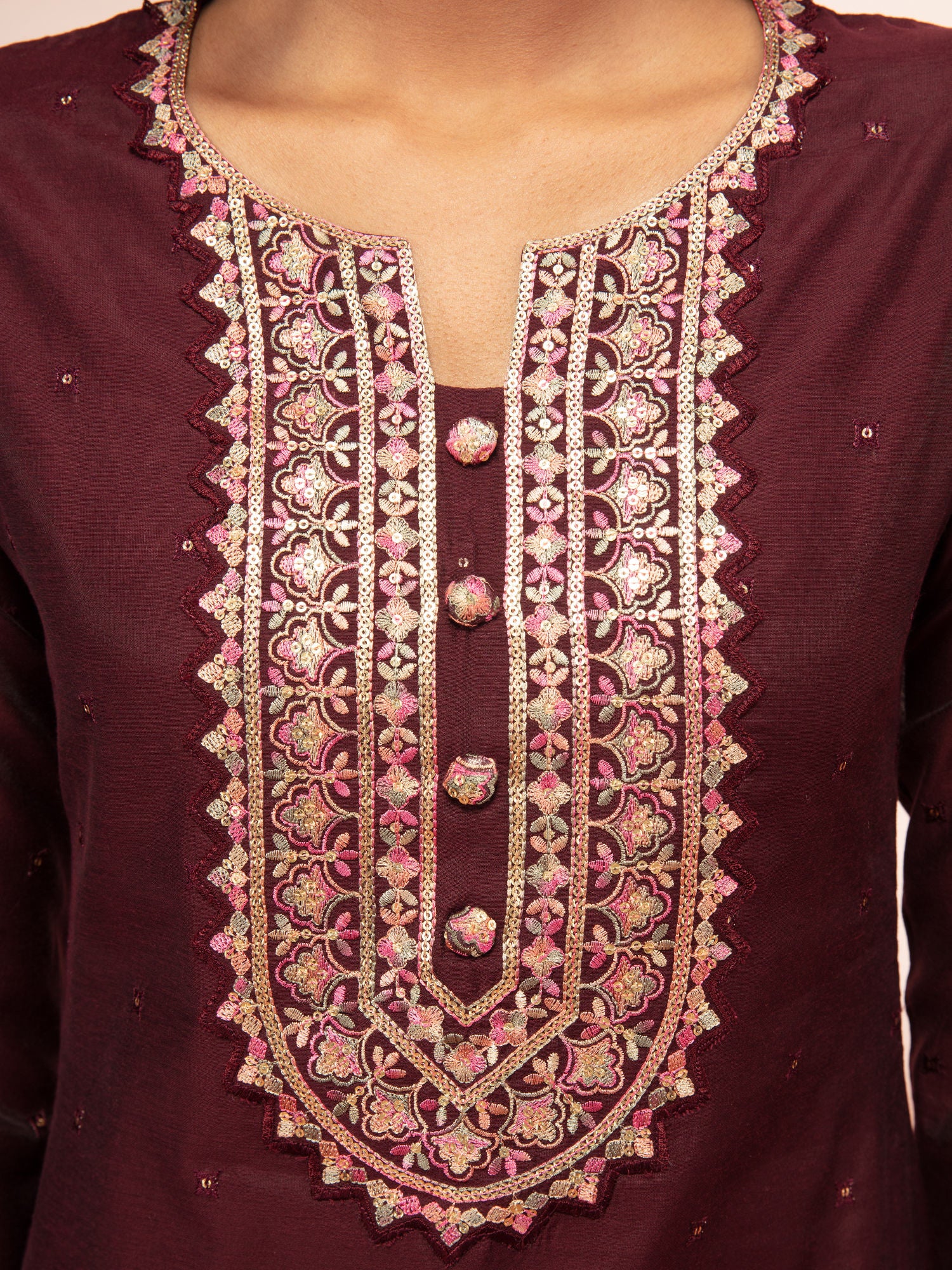 Likha Shaan-e-Avadh Maroon Sequins work Kurta, Pant & Dupatta LIKSKD123 (Set of 3) - M