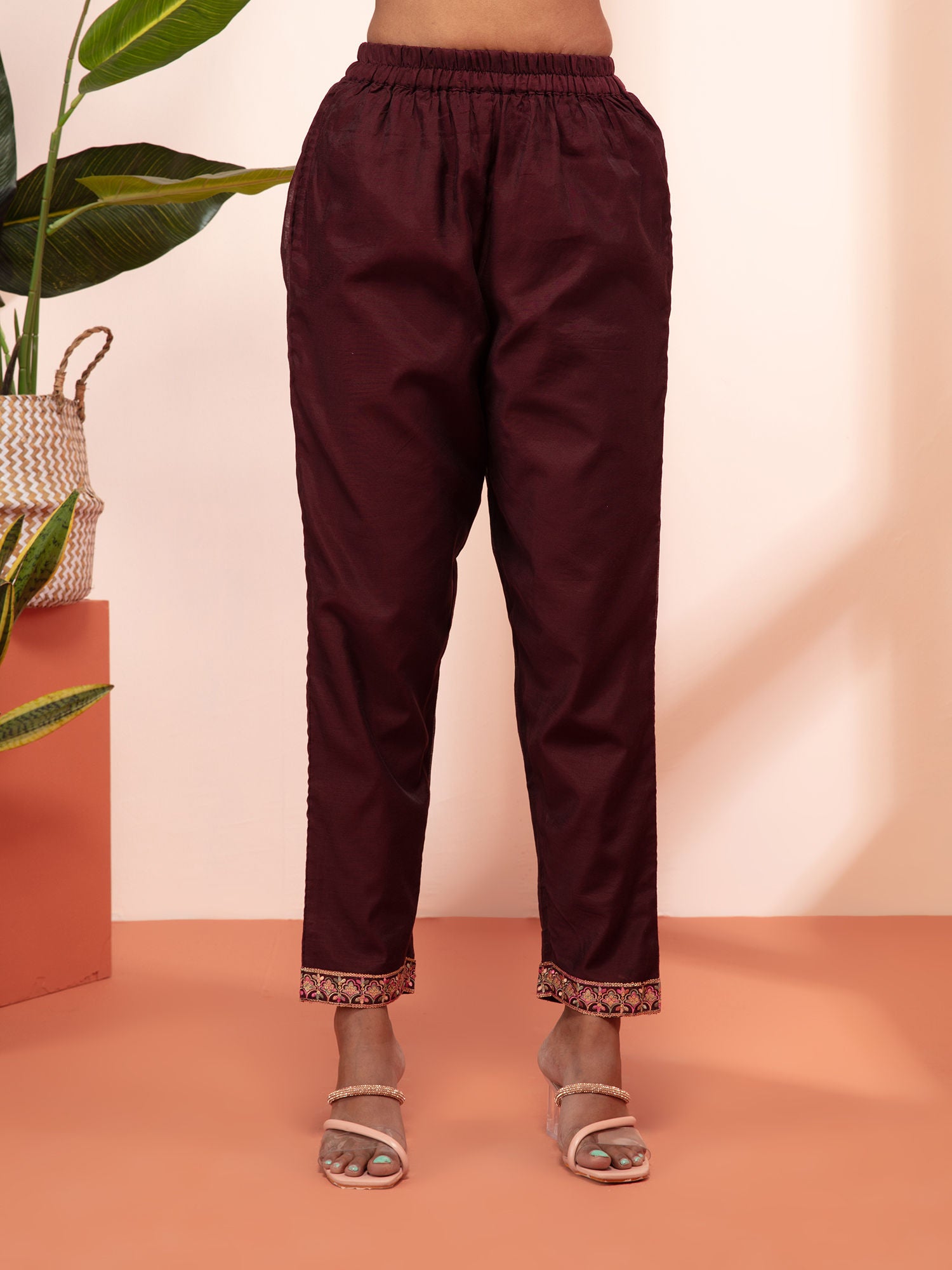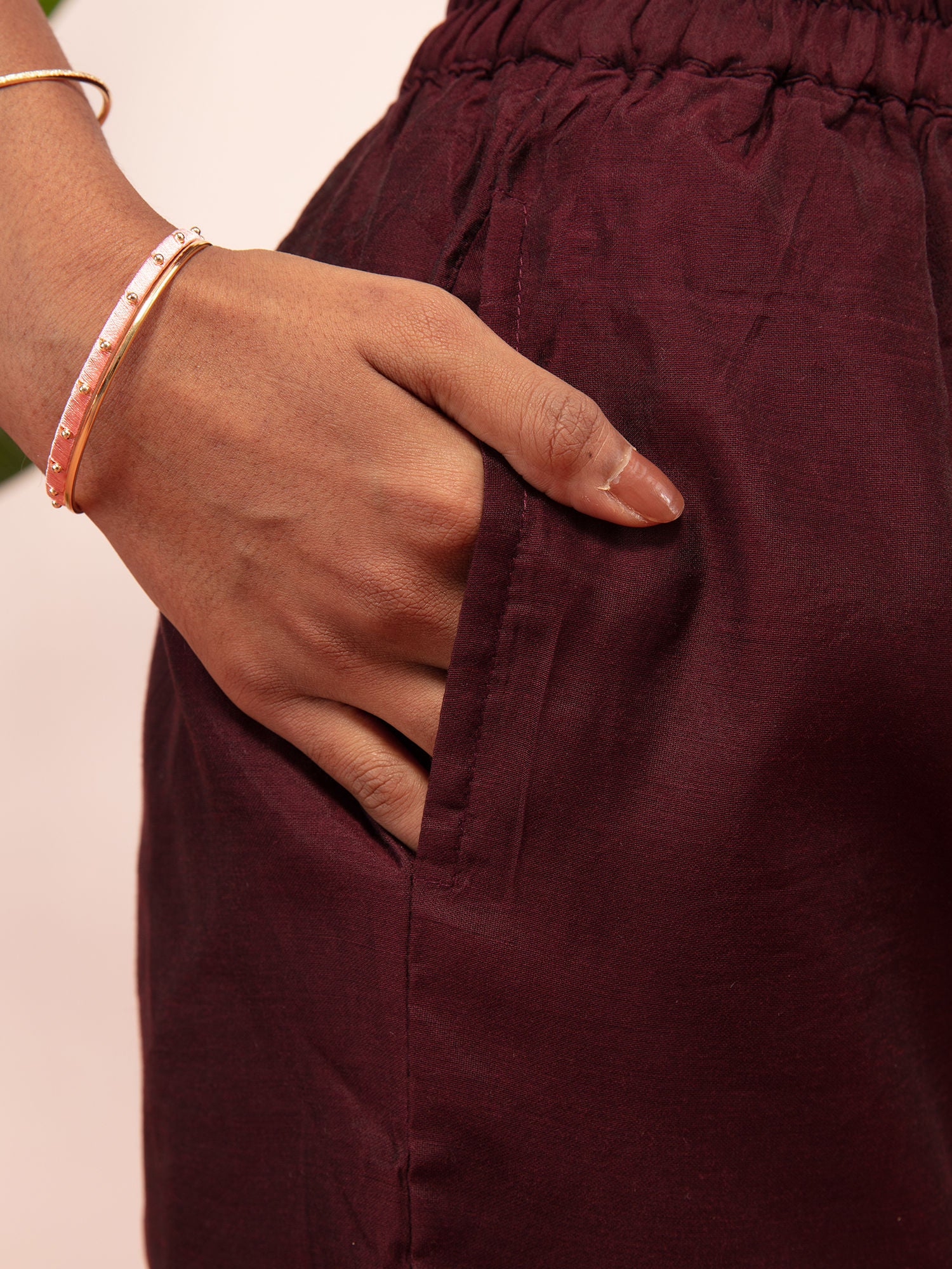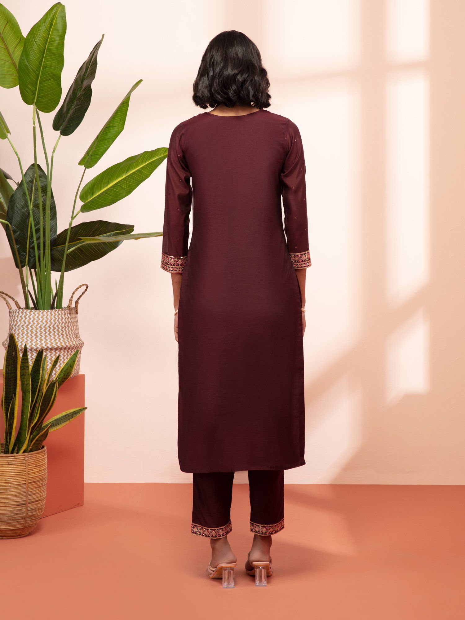 Likha Shaan-e-Avadh Maroon Sequins work Kurta, Pant & Dupatta LIKSKD123 (Set of 3) - M