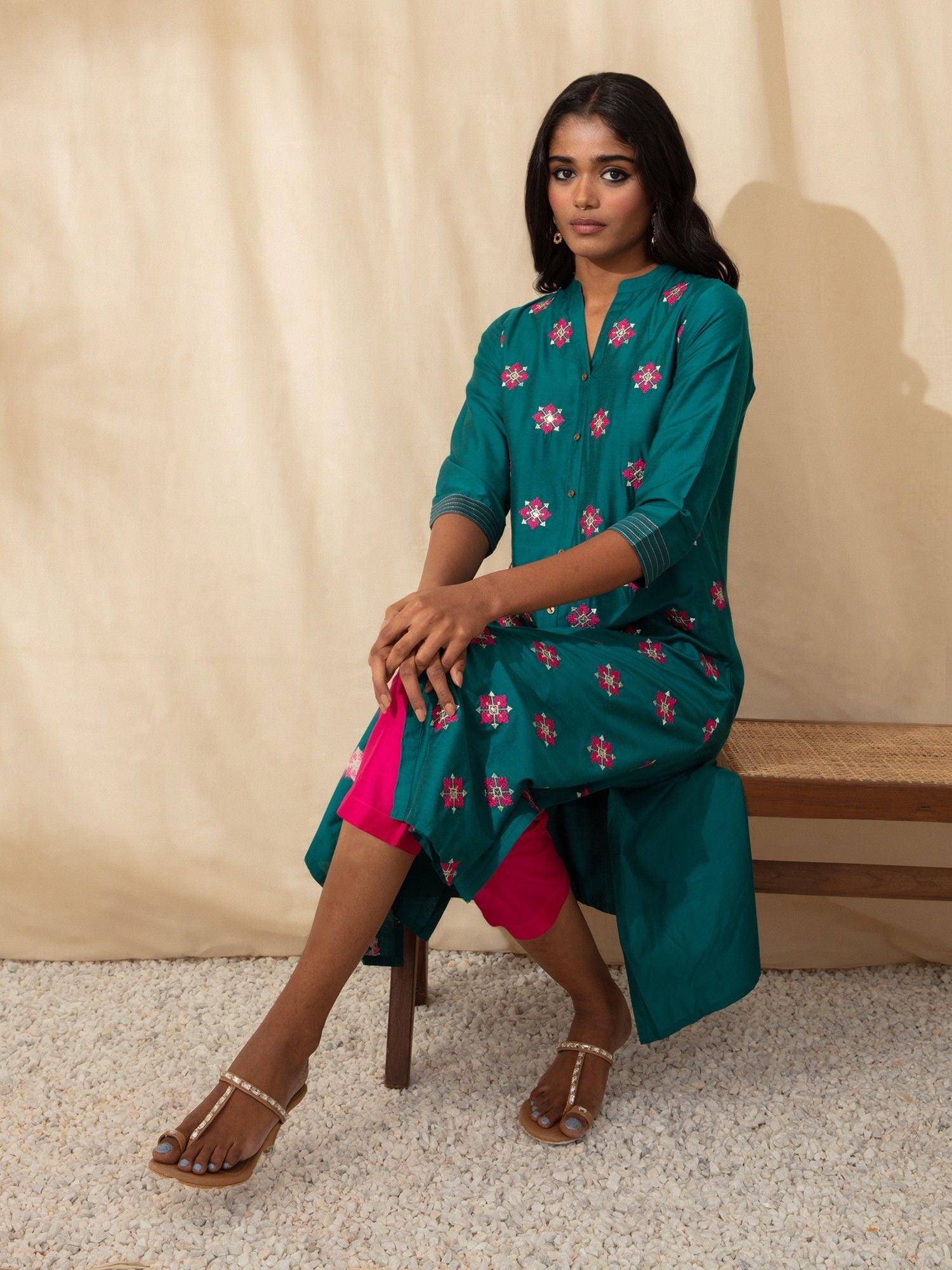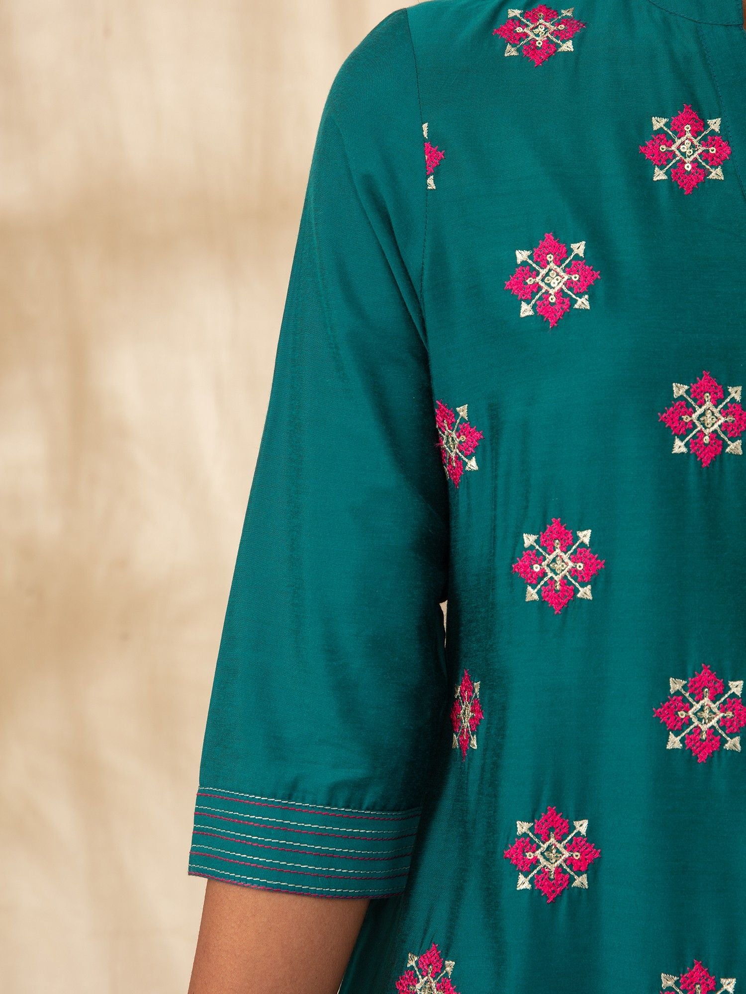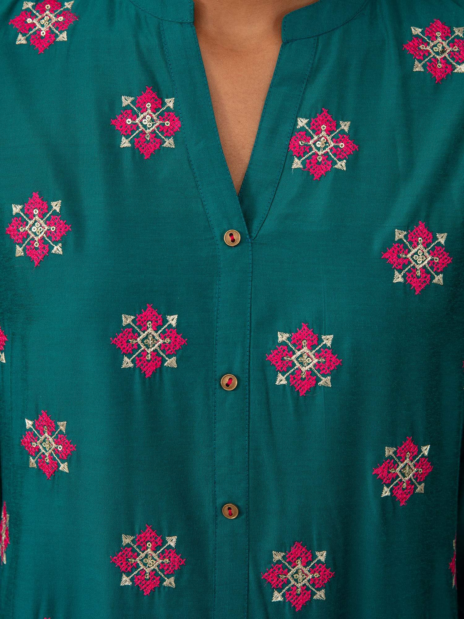 Likha Teal Blue Art Silk Embroidered Co-ord Set LIKSKD243 (Set of 2)