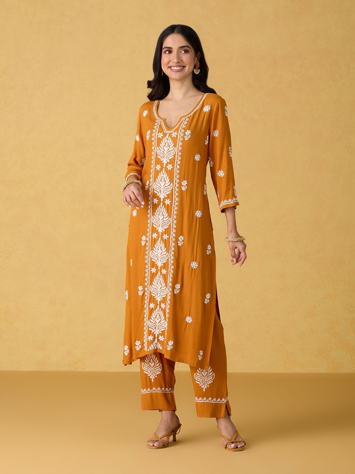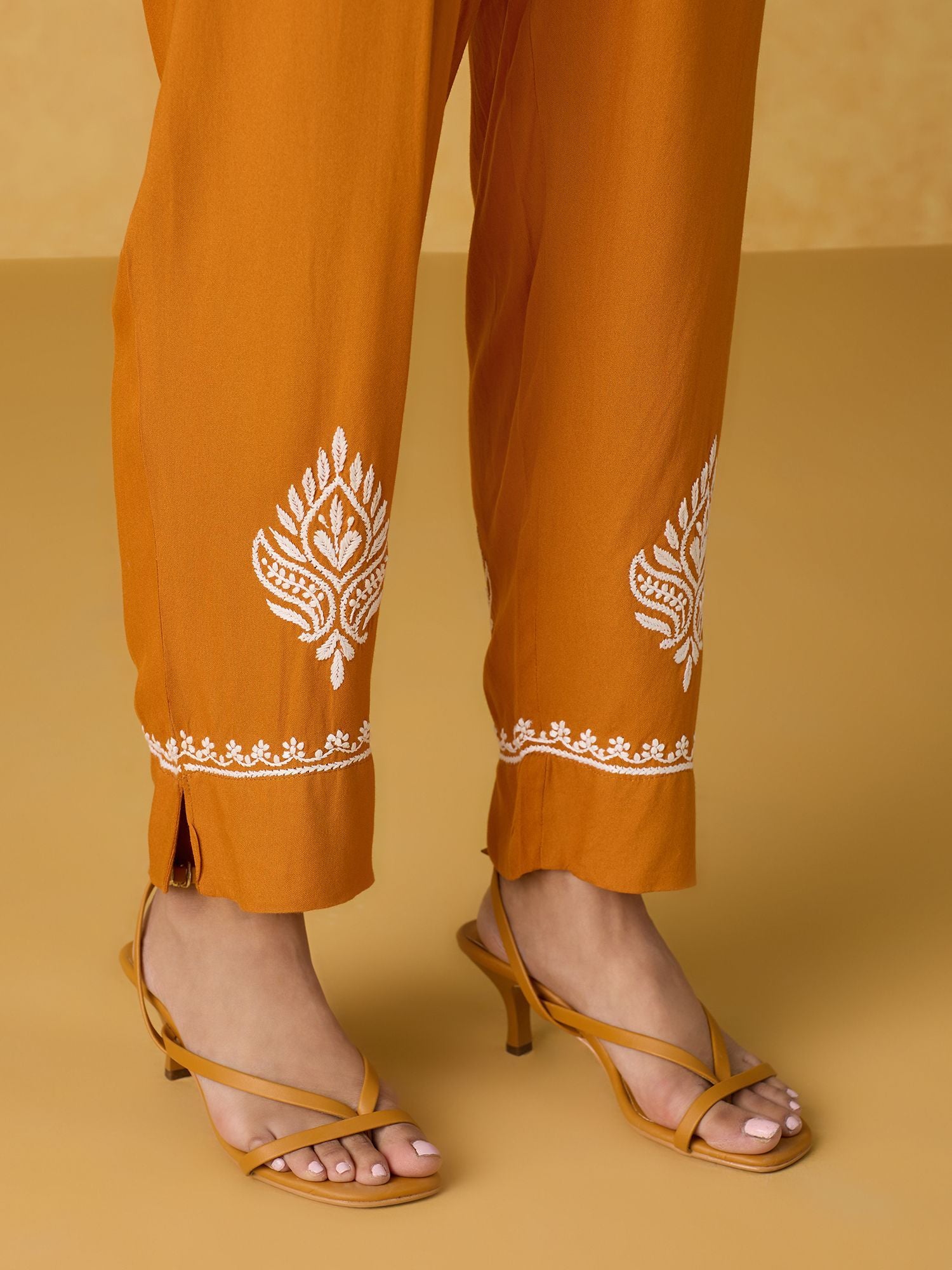 • Elevate your style with this exquisitely handcrafted Yellow embroidered salwar suit set by Likha, featuring intricate Chikankari work. Crafted for those who want to stand out at gatherings, this ensemble is the perfect choice.