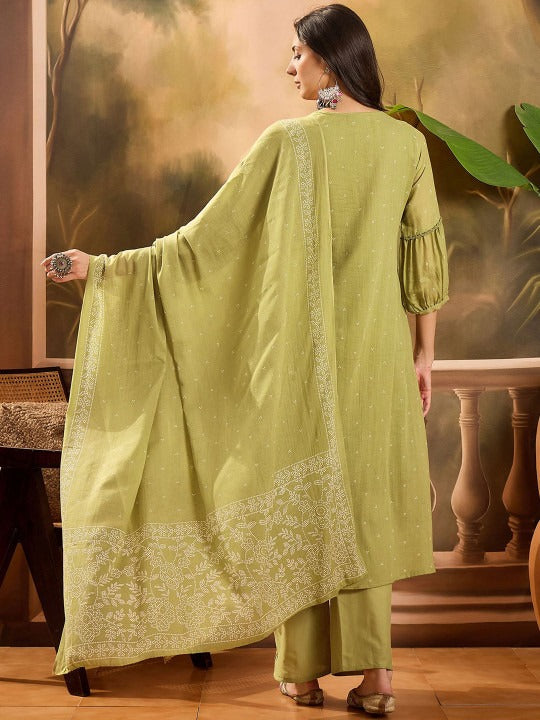 Sangria Women Ethnic Motifs Embroidered Cotton Kurta with Trousers & Dupatta