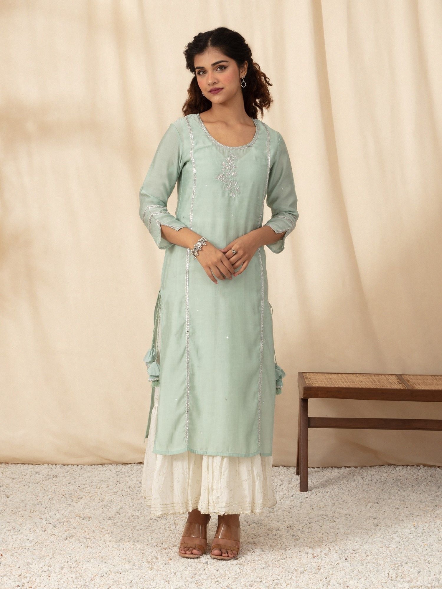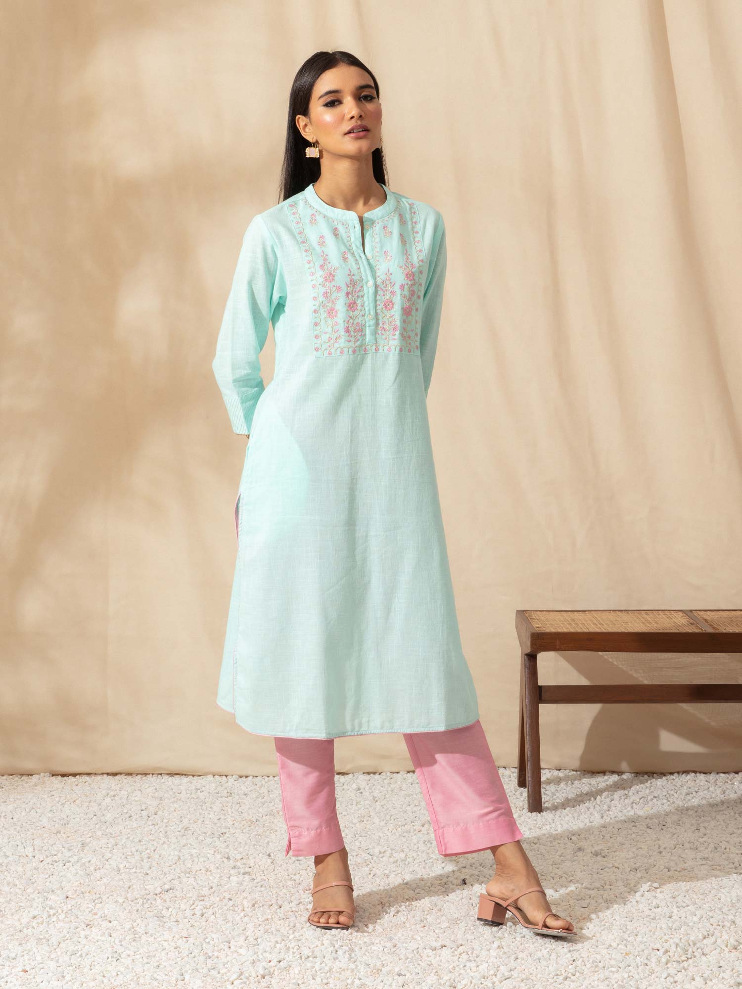 Likha Aqua Yoke Embroidered Aline Cotton Co-ord Set LIKSKD61 (Set of 2)