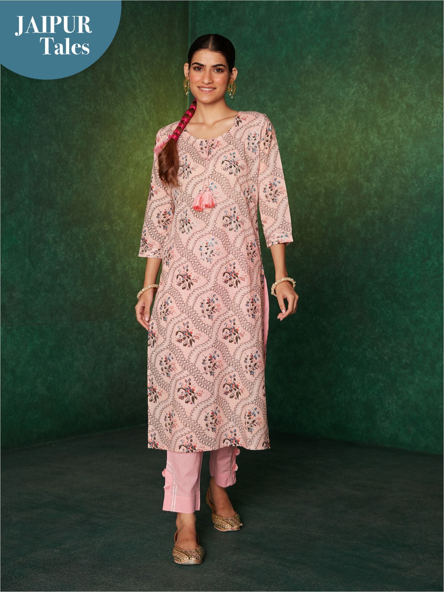 Likha Sanganeri Tales Pink Jaipuri Printed Co-ord Set LIKSKD141 (Set of 2)