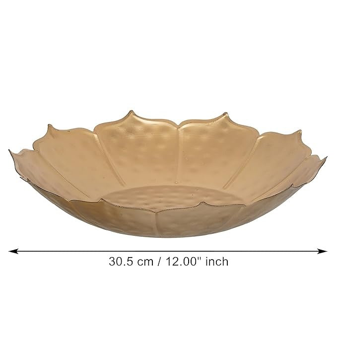 eCraftIndia Golden Metal Lotus Urli for Home Decor Office Table,Flower Decorative Bowl  - (27x27cm)