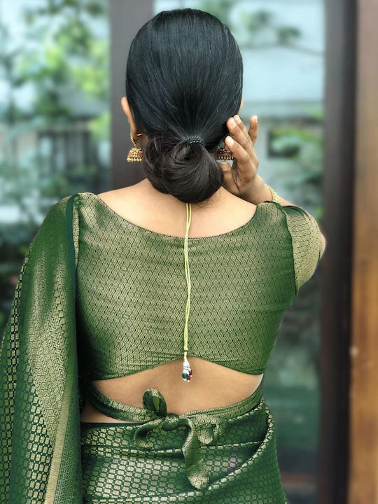 • The blouse worn by the model might be for modelling purpose only. Check the image of the blouse piece to understand how the actual blouse piece looks like.