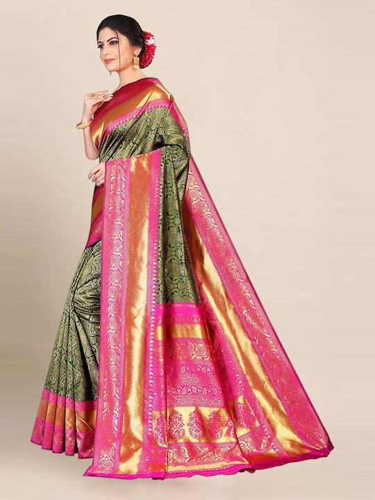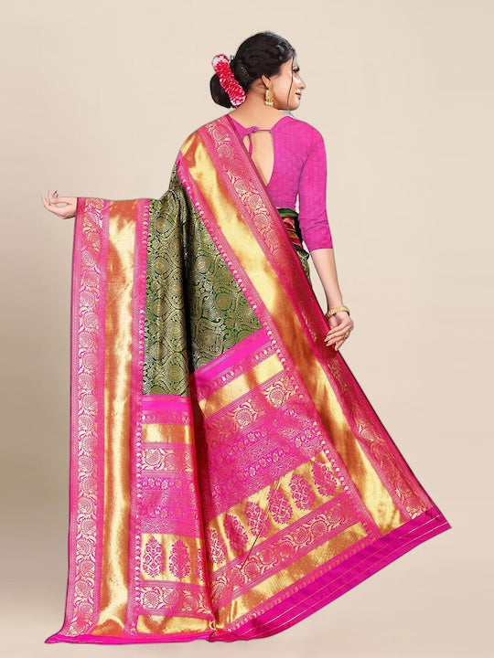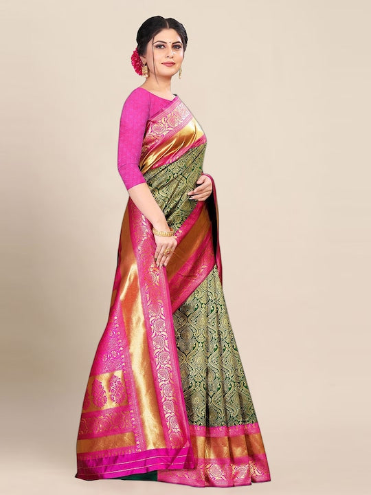 - Green and pink banarasi saree