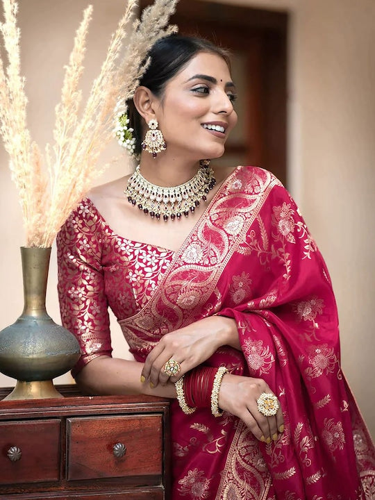 Anjaneya Sarees Woven Design Zari Banarasi Saree