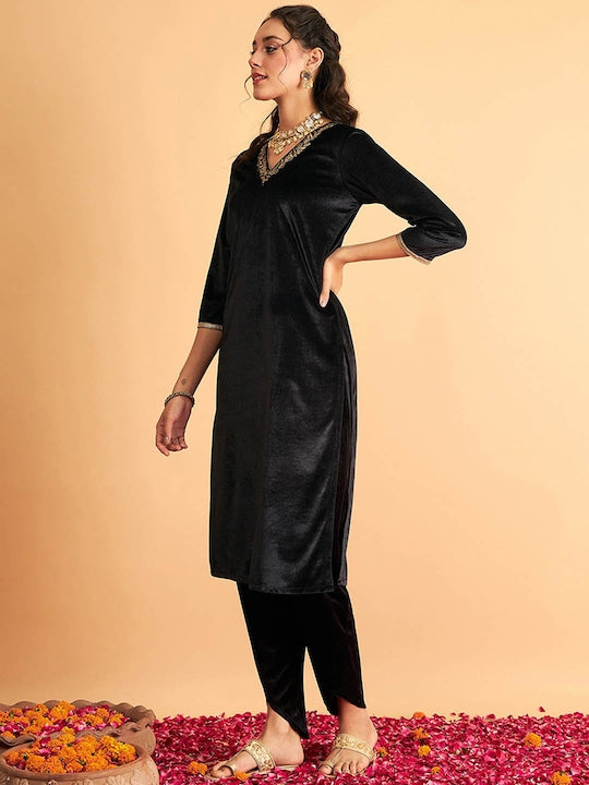 Shae by Sassafras Embroidered V-Neck Zari Velvet Kurta