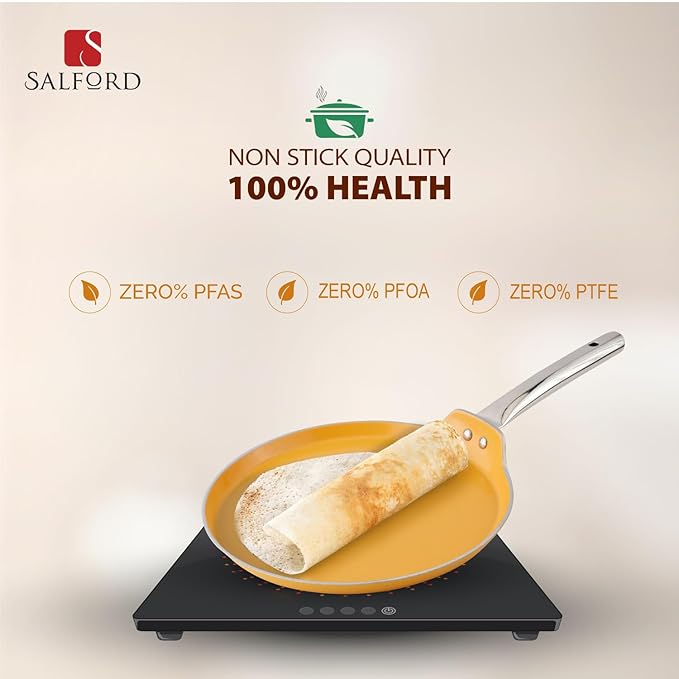 Salford Forged Ceramic Non-stick Tava With Tubular Ss Handle | Induction & Gas Ready | Mustard Yellow - 280mm