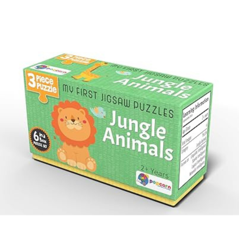 Popcorn Games & Puzzles Jungle Animals 3 Piece Puzzles 6 Puzzles In A Box & Animals & Birds Activity