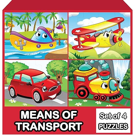 Wondrbox Means Of Transport Jigsaw Puzzles For Kids Means of Transport Set of 4 Puzzles in Box