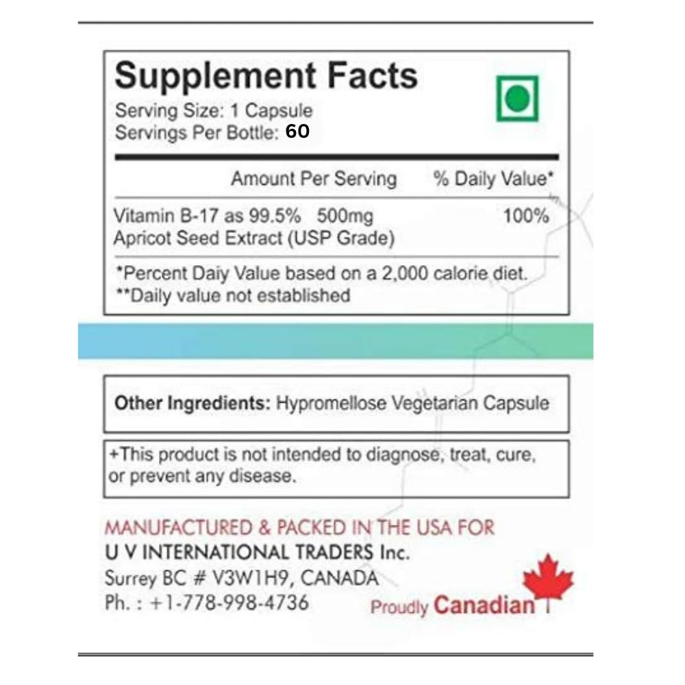 Asterveda Vitamin B17 Amygdalin 99.5% Apricot Extract Organic Natural - 60 Capsules