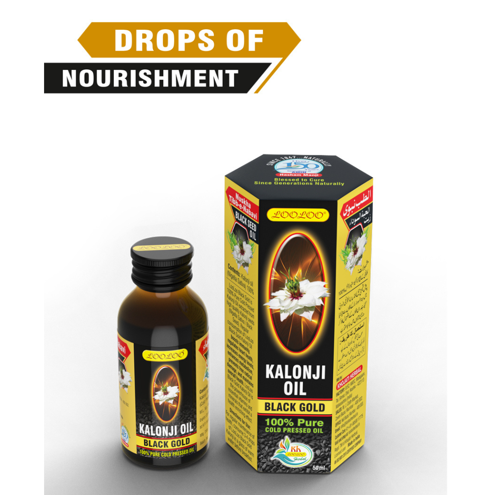 • LooLoo Black Gold Kalonji Oil is extracted from high quality Kalonji seeds (Black seed/Nigella sativa) through the cold press method.