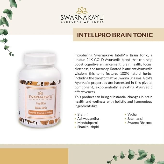 Swarnakayu 24K Gold Bhasma IntellPro Brain Booster Supplements - 30 Tabs