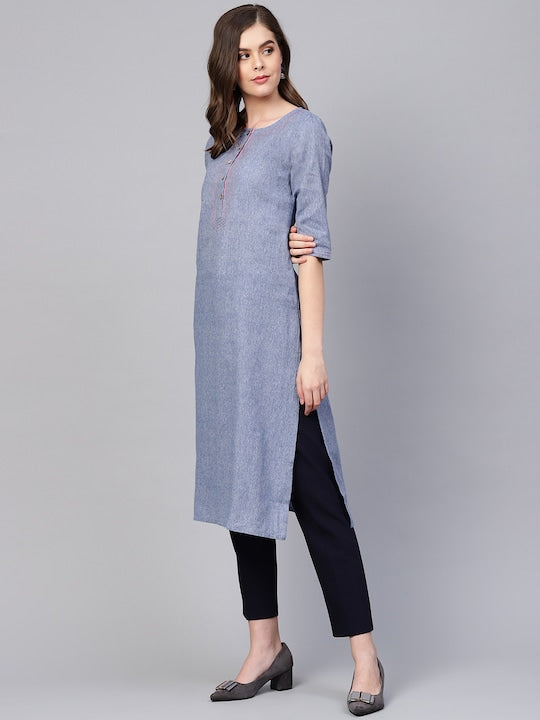 Ahalyaa Womens Summer Blue Pure Cotton Printed Kurtas