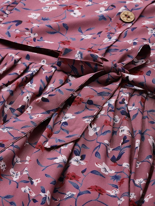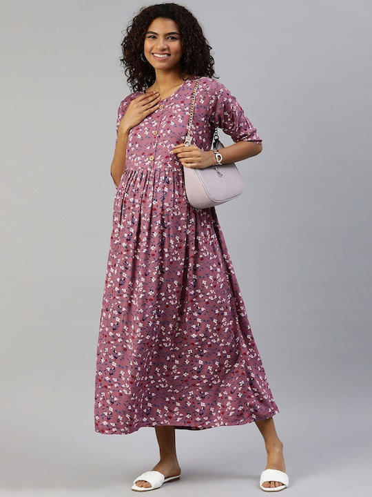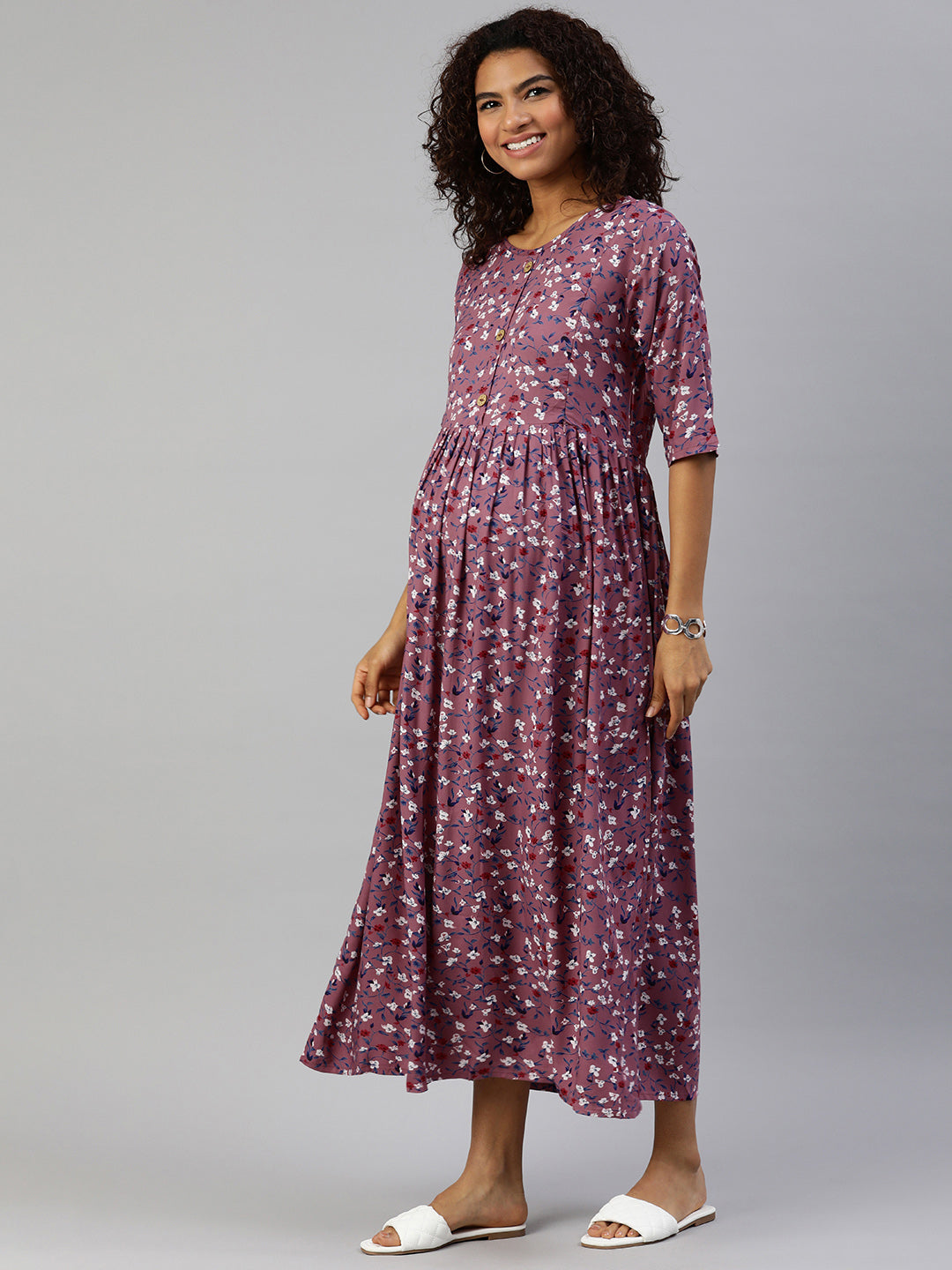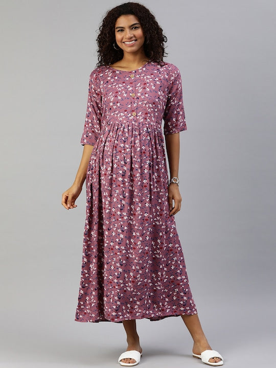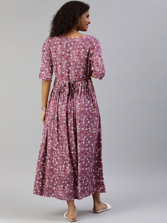 MomToBe Mauve Floral Printed Maternity Nursing Maxi Dress