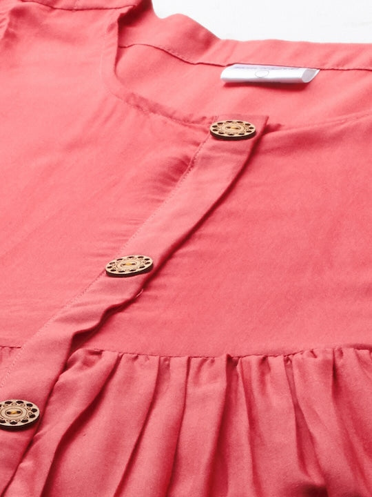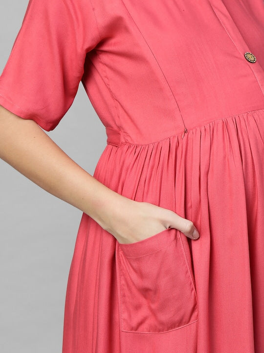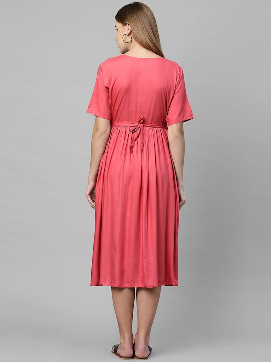 MomToBe Peach-Coloured Solid Maternity Nursing A-Line Midi Dress