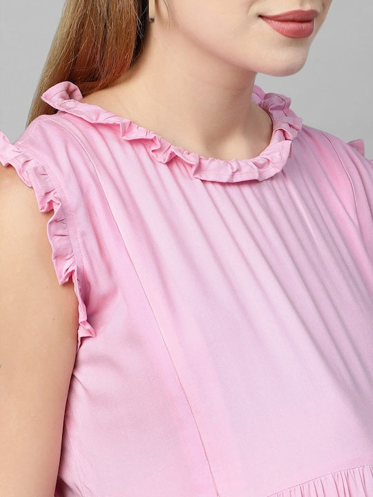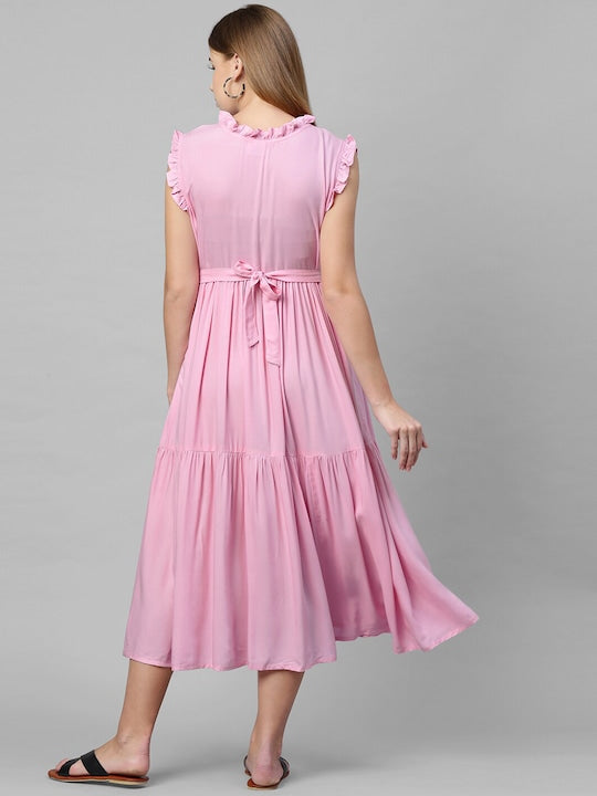 MomToBe Pink A-Line Maternity Midi Nursing Dress