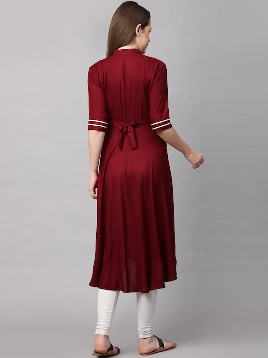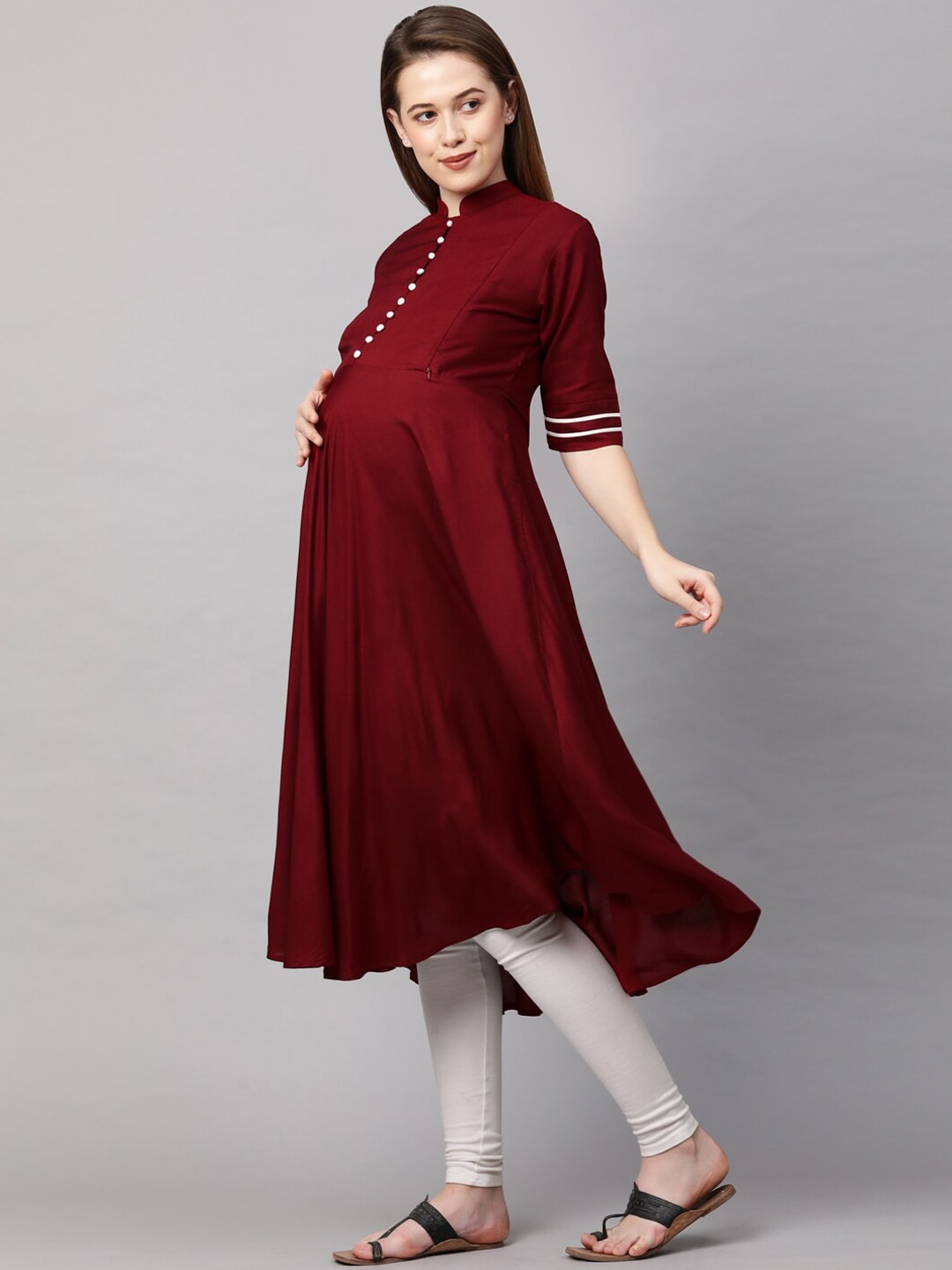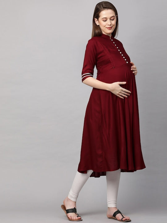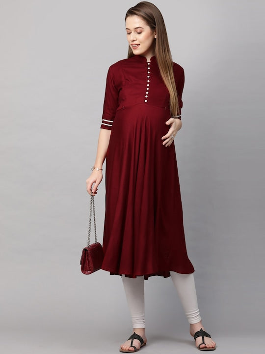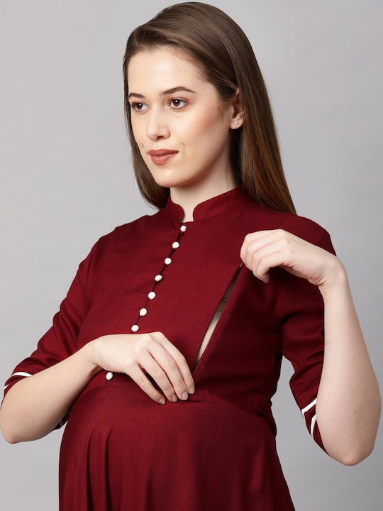 MomToBe Women Maroon Maternity Nursing Anarkali Kurta