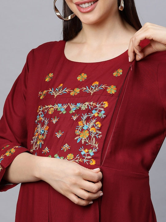 MomToBe Women Maroon Solid Maternity Nursing Dress