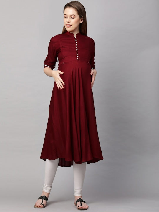 MomToBe Floral Yoke Design Notched Neck Thread Work Maternity Anarkali Kurta