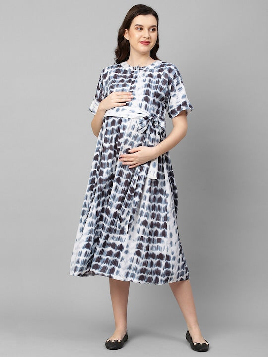 MomToBe Green Maternity A-Line Midi Nursing Dress