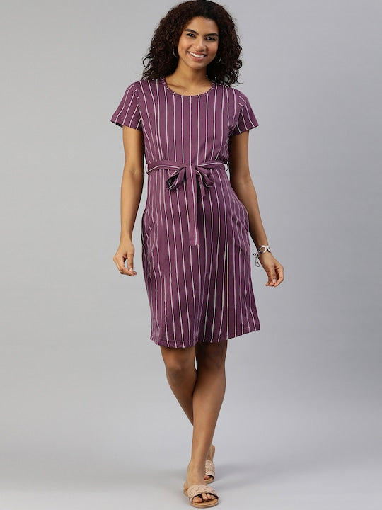 MomToBe Peach-Coloured Solid Maternity Nursing A-Line Midi Dress
