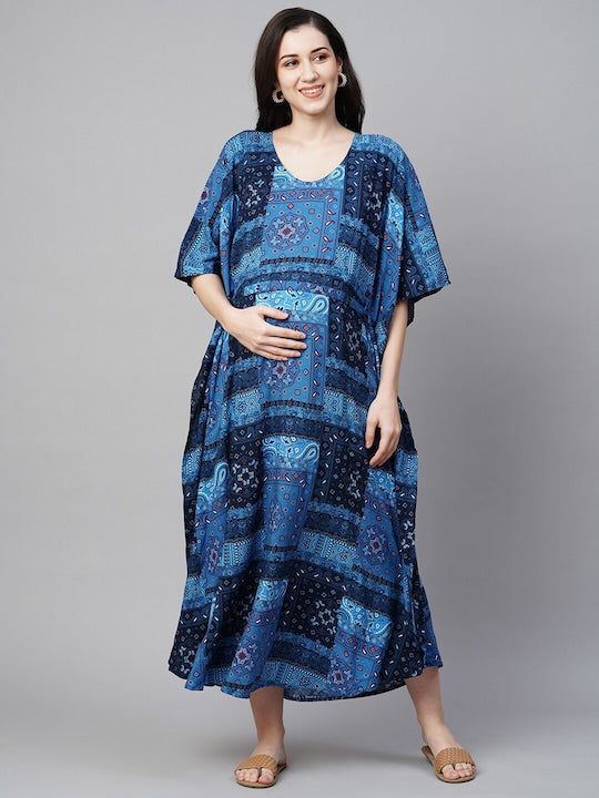 MomToBe Mauve Floral Printed Maternity Nursing Maxi Dress