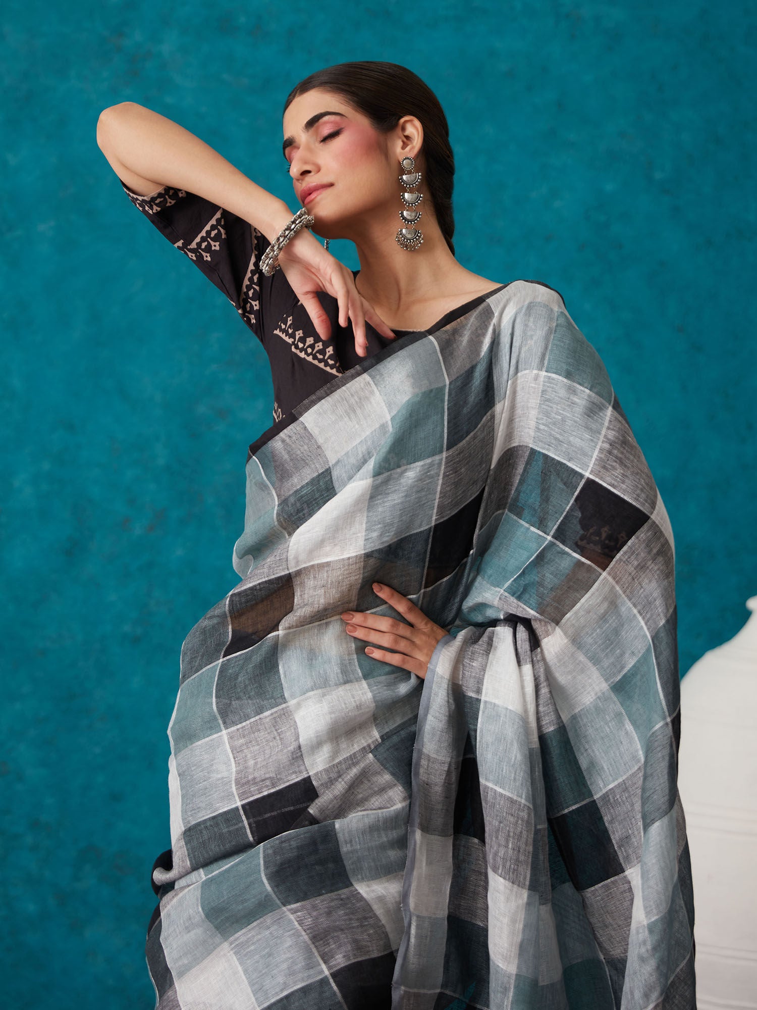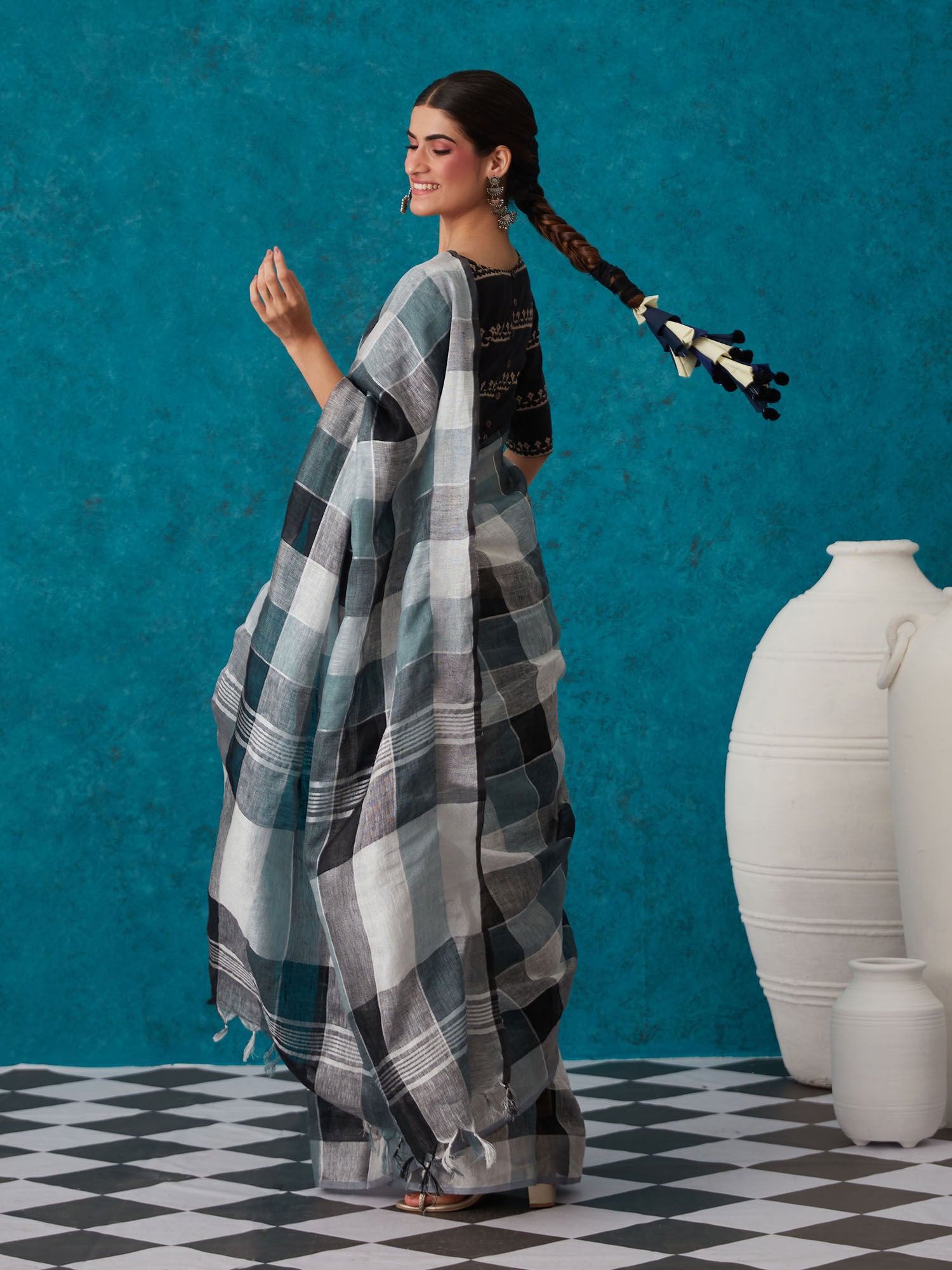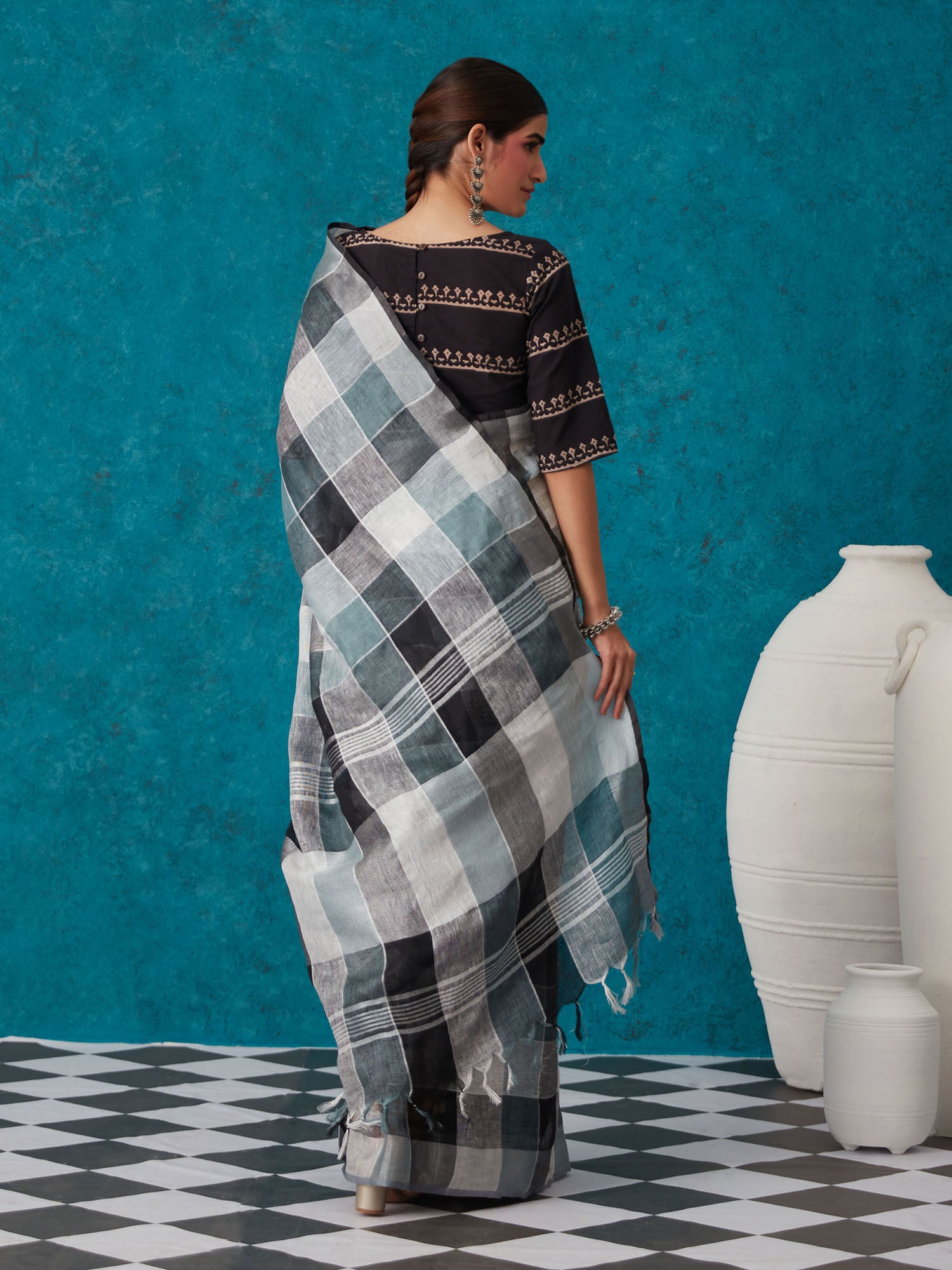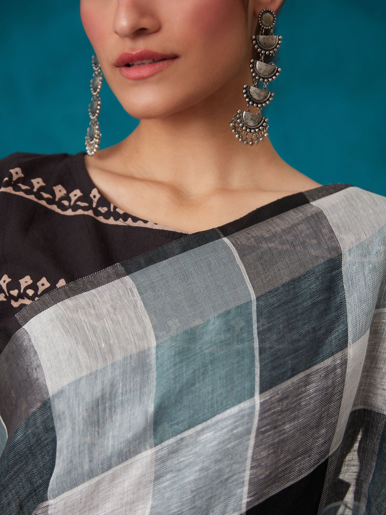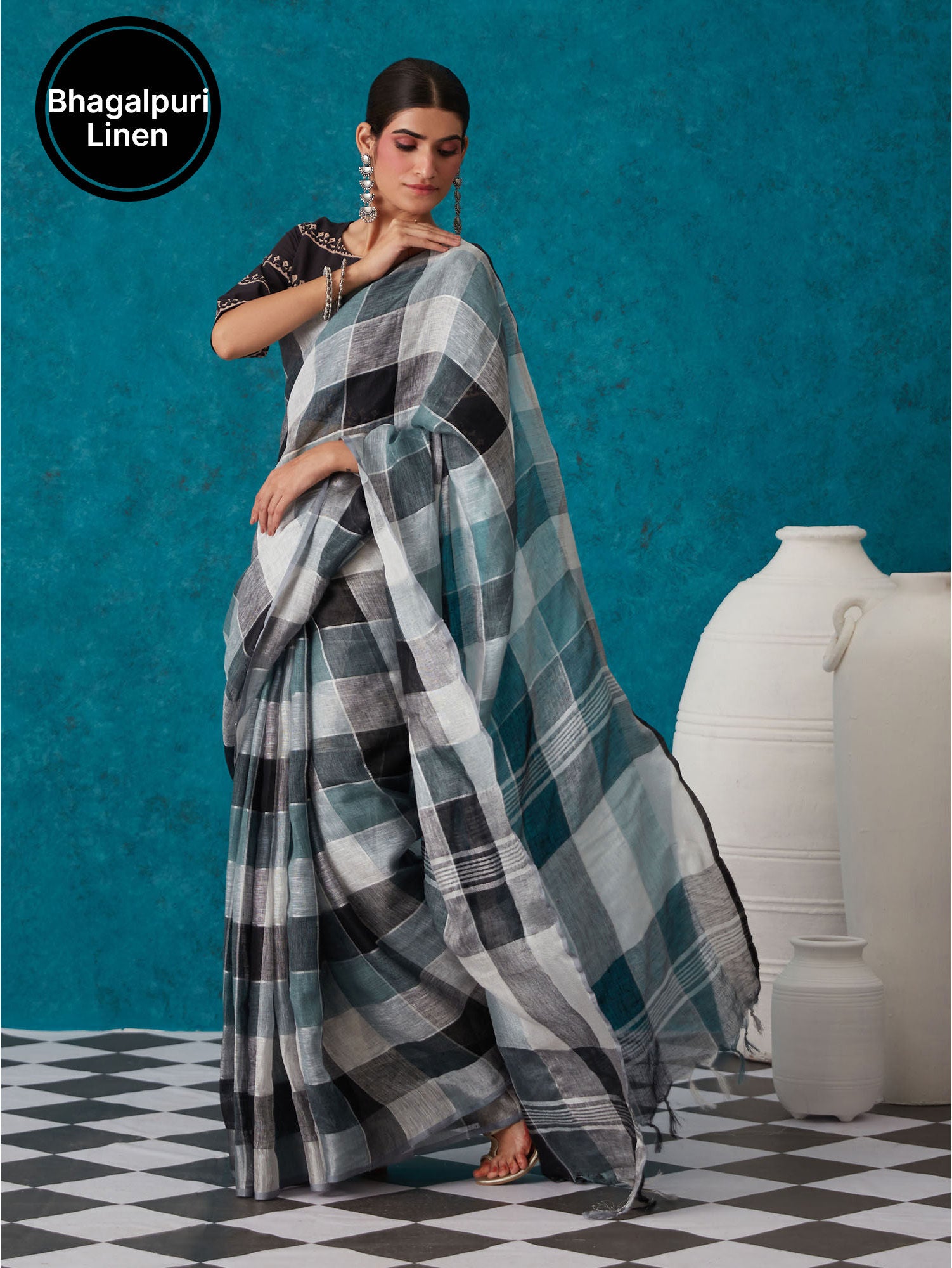 Likha Black Linen Zari Blend Bhagalpuri Saree with Unstitched Blouse LIKSAR86 (Free Size)