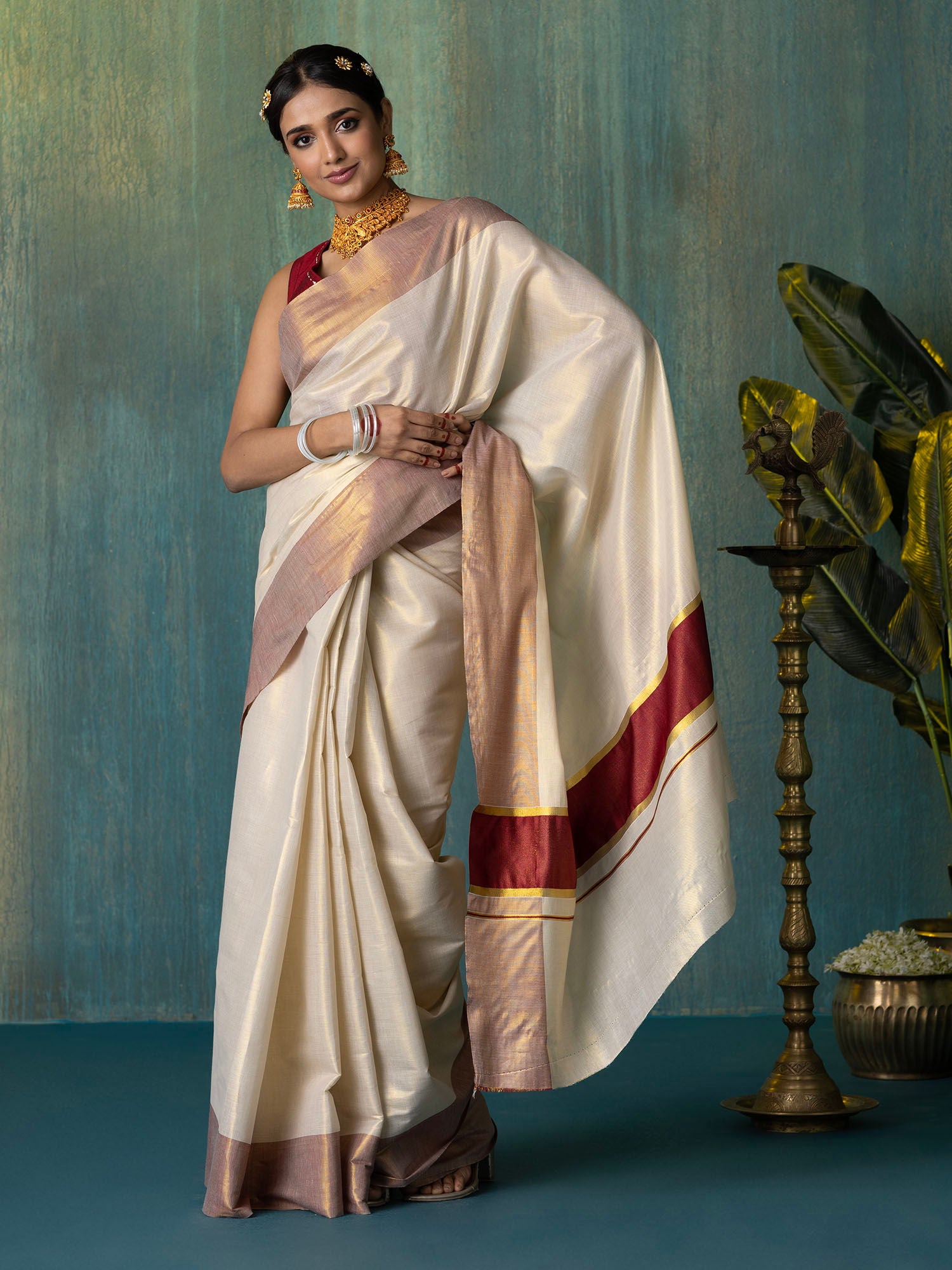 - Step into the world of mesmerizing aesthetics and revel in the splendor of Onam with our finest selection of Kasavu sarees.