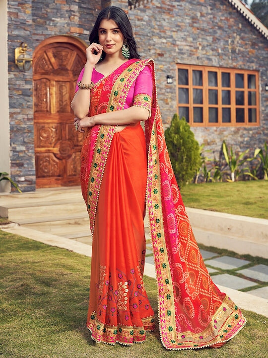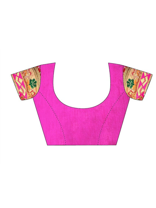 • The saree comes with an unstitched blouse piece. The blouse worn by the model might be for modelling purpose only. Check the image of the blouse piece to understand how the actual blouse piece looks like.