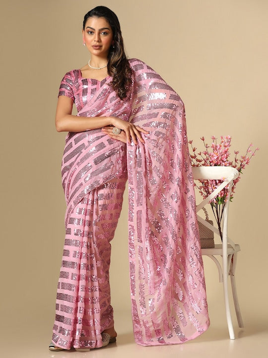 • The saree comes with an unstitched blouse piece. The blouse worn by the model might be for modelling purpose only. Check the image of the blouse piece to understand how the actual blouse piece looks like.