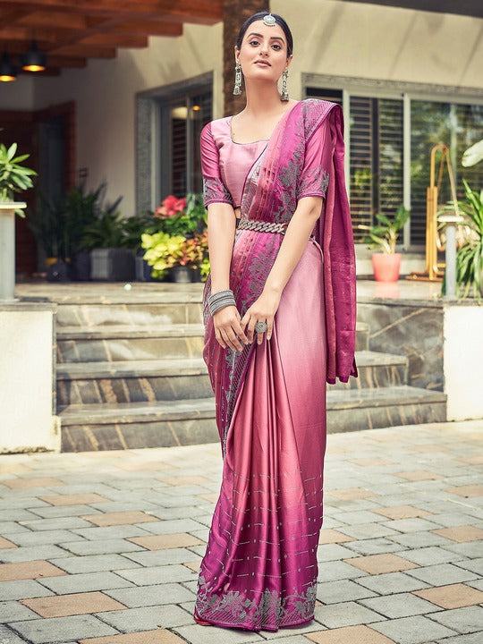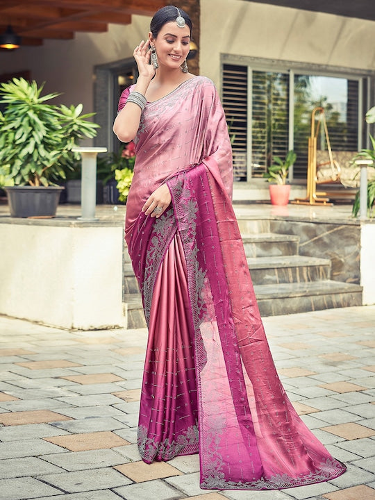 - The blouse worn by the model might be for modelling purpose only. Check the image of the blouse piece to understand how the actual blouse piece looks like.