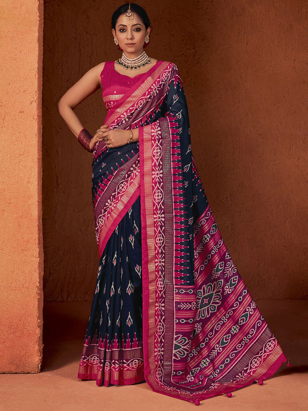 Satrani Ethnic Motifs Printed Zari Pure Silk Pochampally Saree