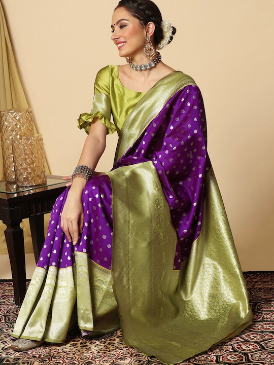 • Purple, green saree