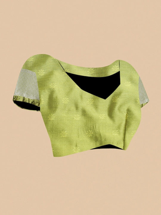 • The saree comes with an unstitched blouse piece