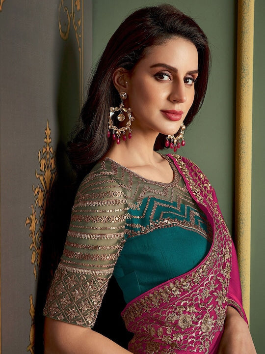 - Pink baluchari saree