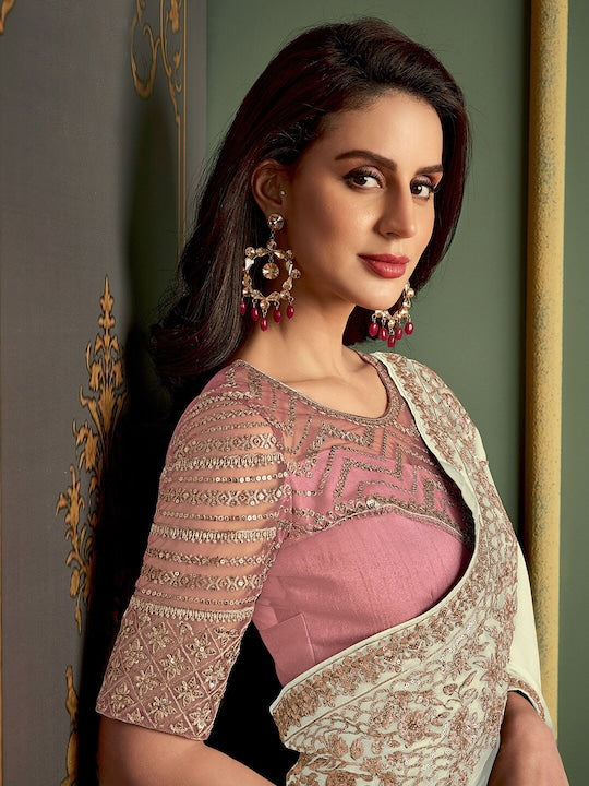 Satrani Floral Embroidered Sequinned Baluchari Saree
