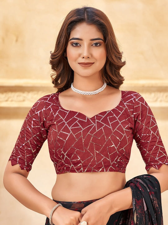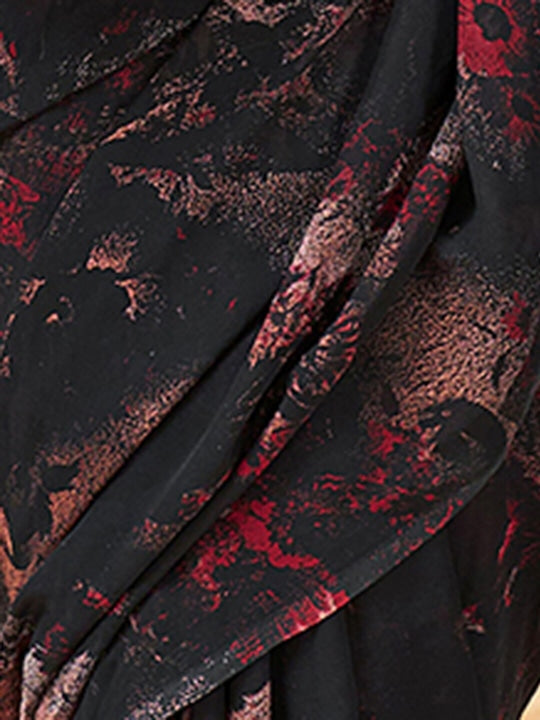 • Black and red saree with blouse piece