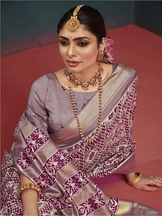 - Woven Design: Ethnic motifs printed saree with woven design border